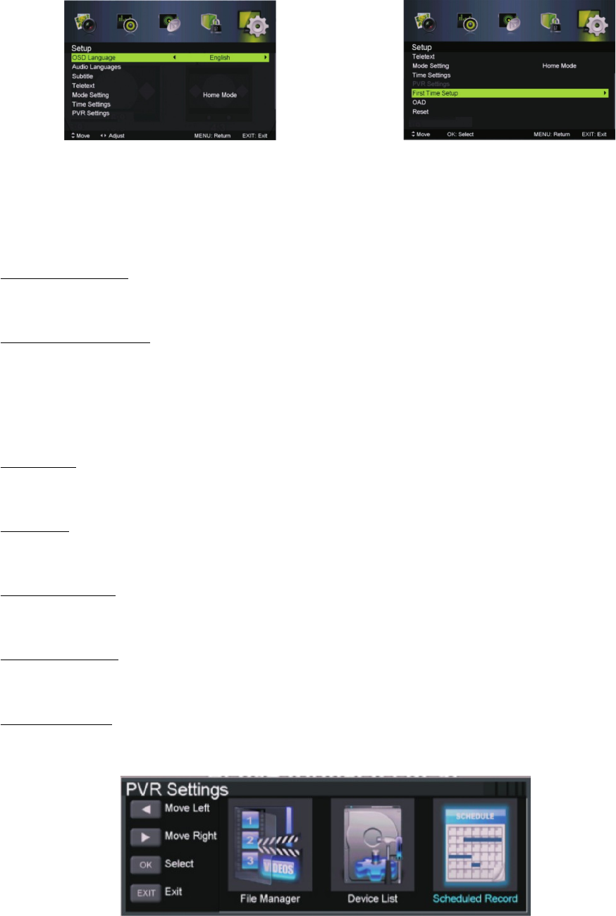 Press button to select PVR Settings, then press ENTER to enter sub-menu.