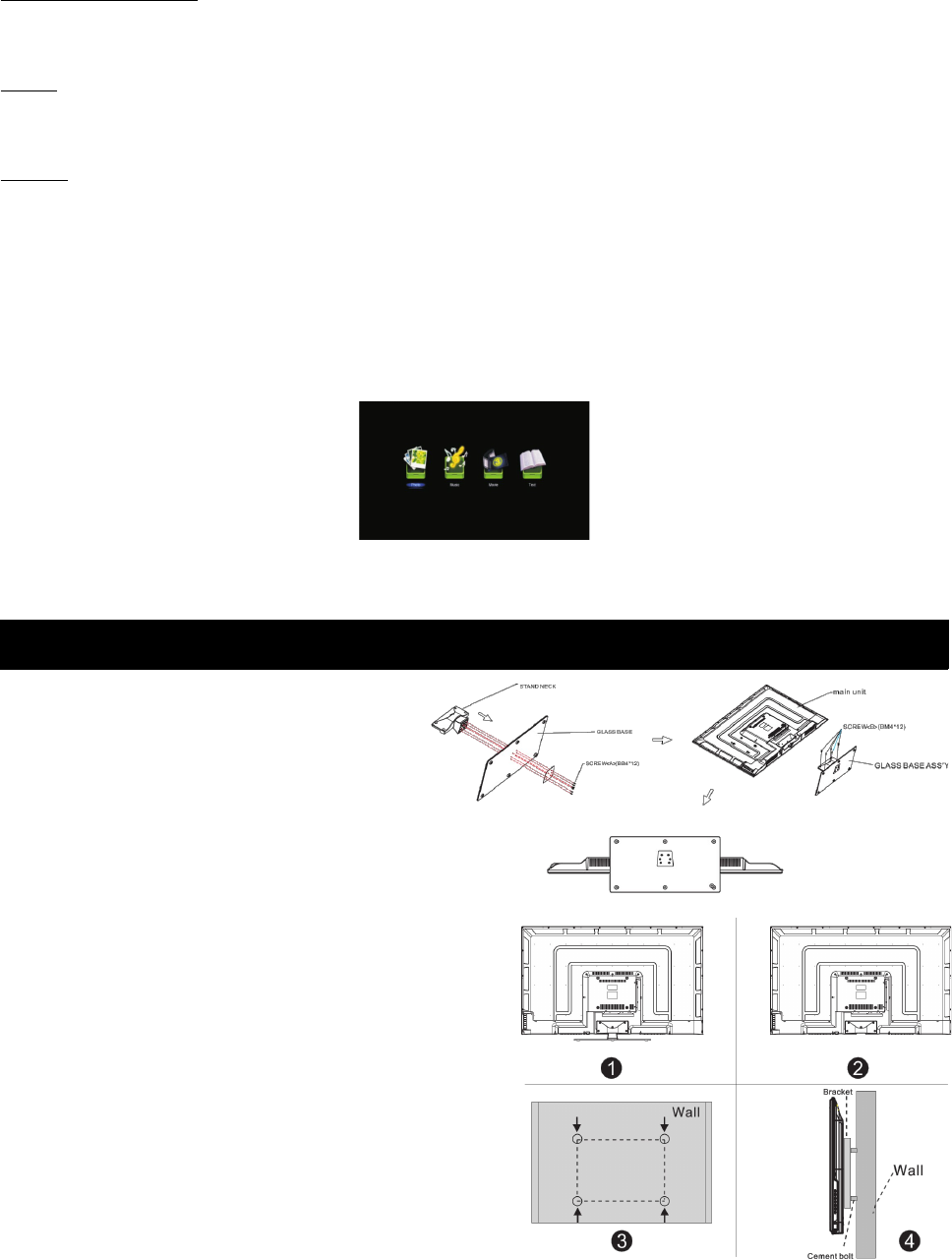 •When mounting the TV, we recommend you have it installed and mounted by a professional, as incorrect