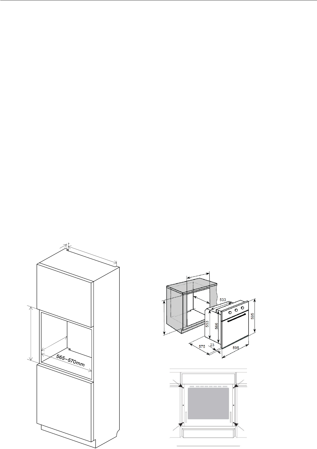 • The panels adjacent to the oven must be made