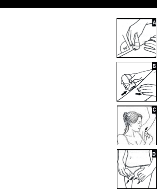 • Do not use the epilator on irritated skin or skin with varicose