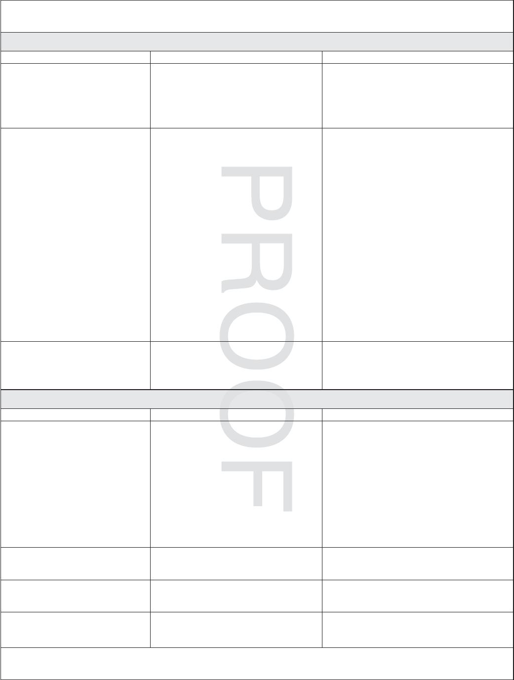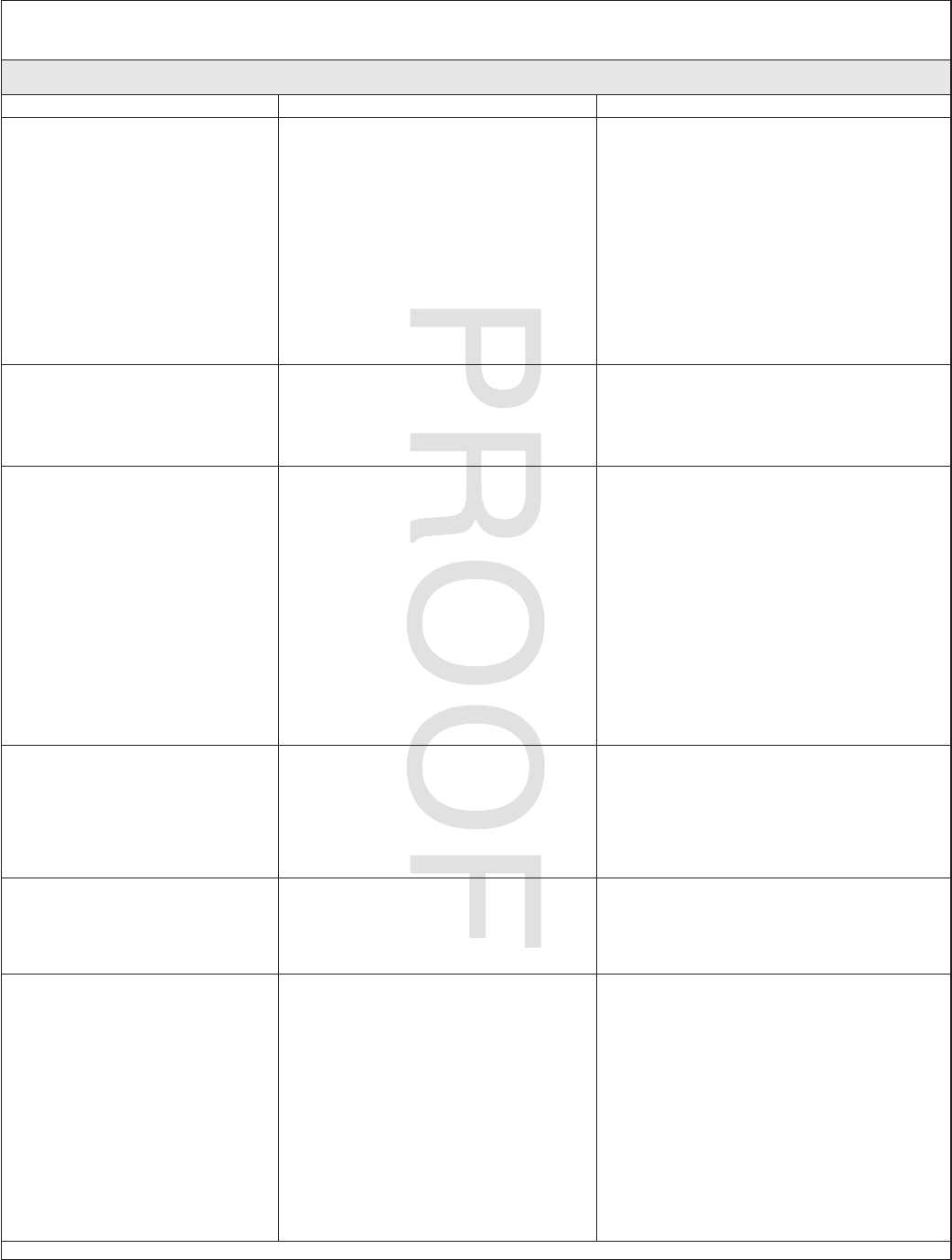 Lights Troubleshooting Table