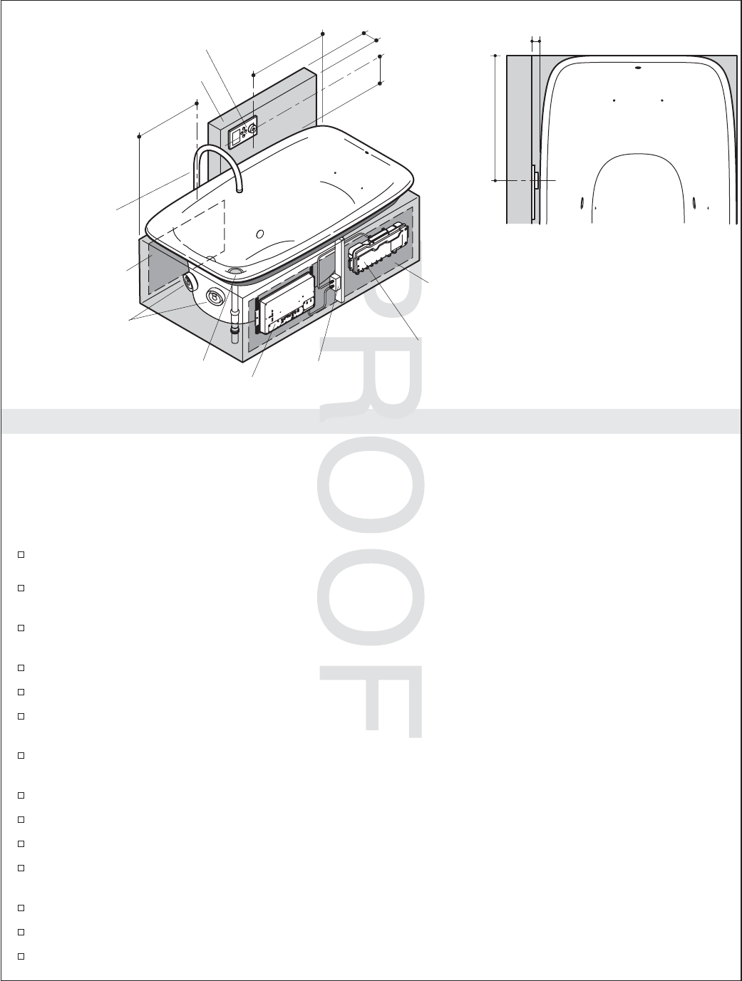 This manual covers horizontal installation under the bath surround. An access panel must be