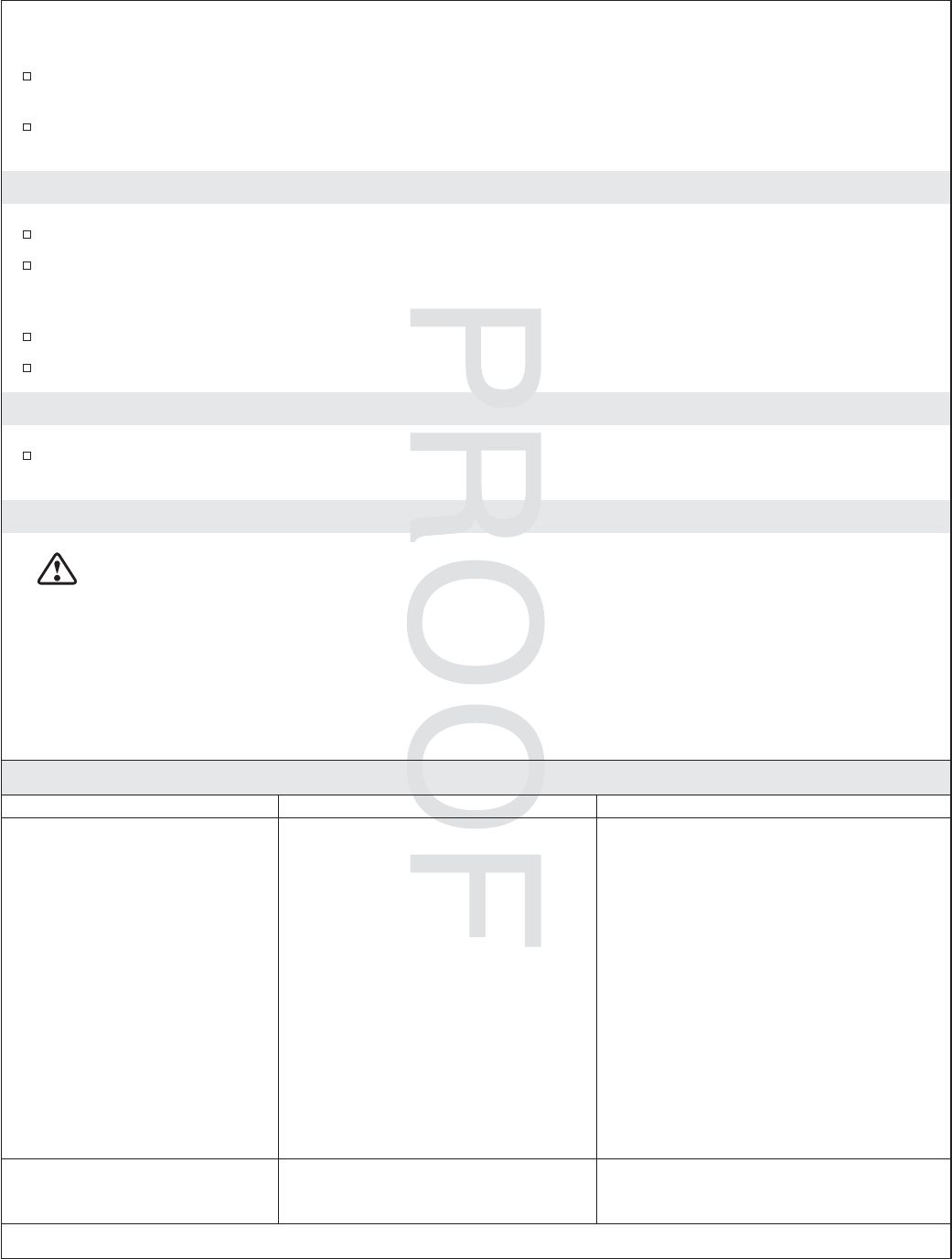 Remote Control Troubleshooting Table
