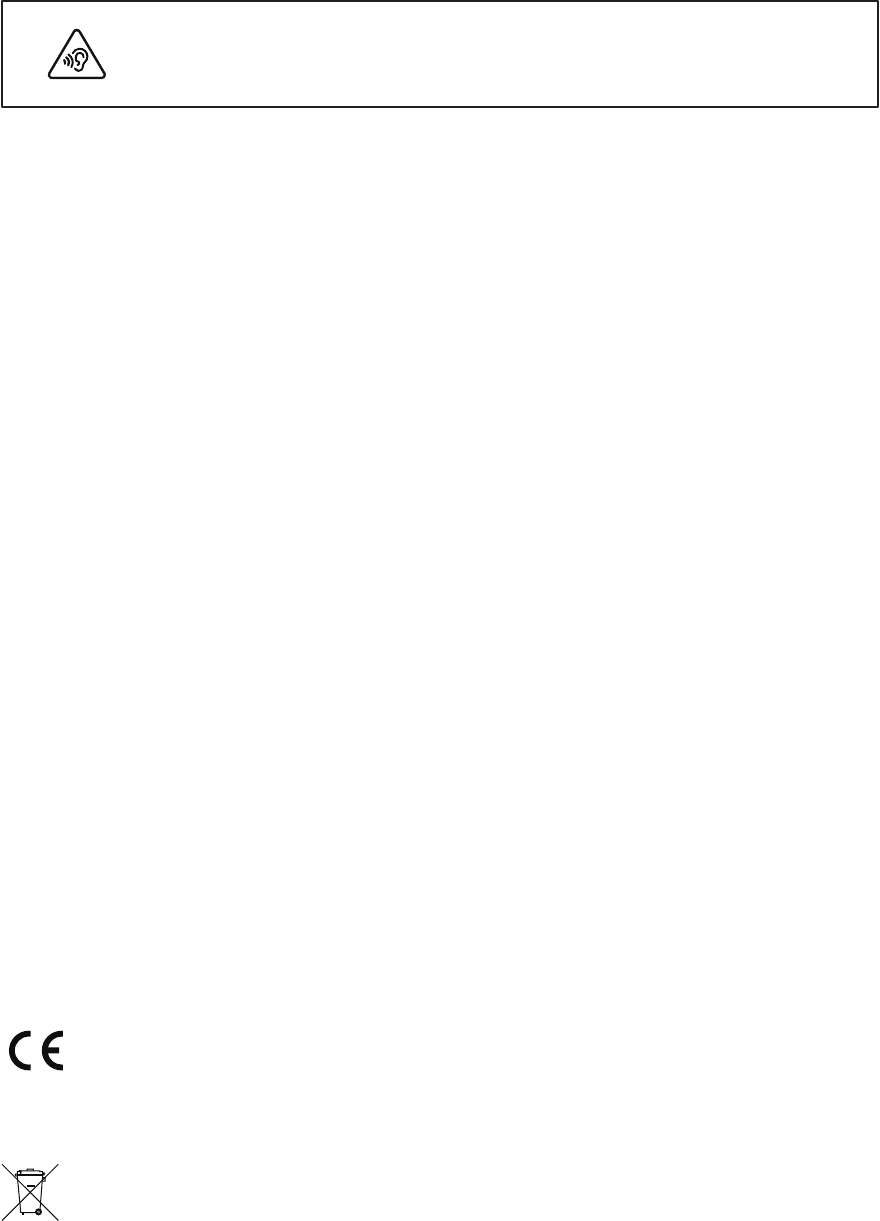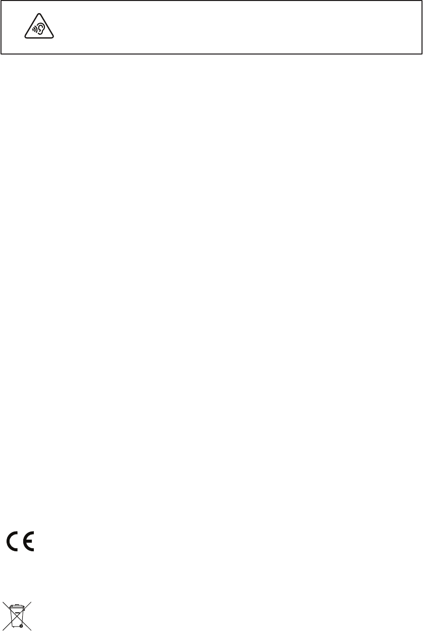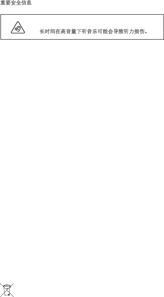 长时间在高音量下听音乐可能会导致听力损伤。
