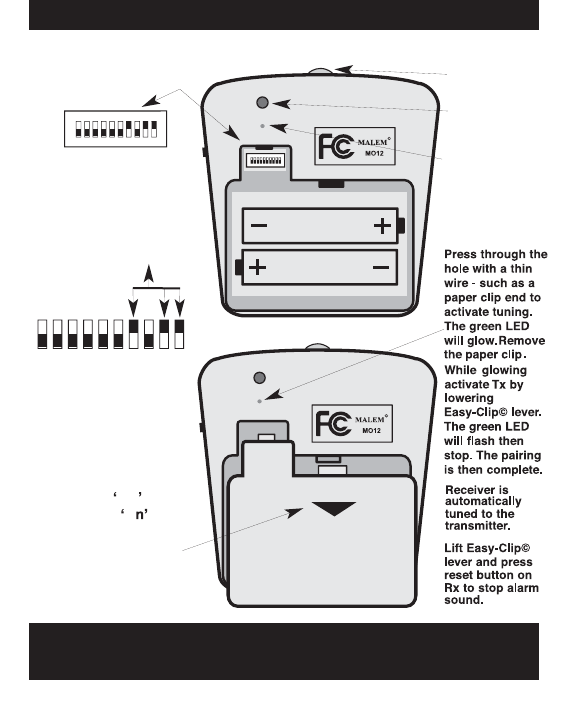 flash and the alarm will sound. Lift the lever of the Easy-Clip©and press