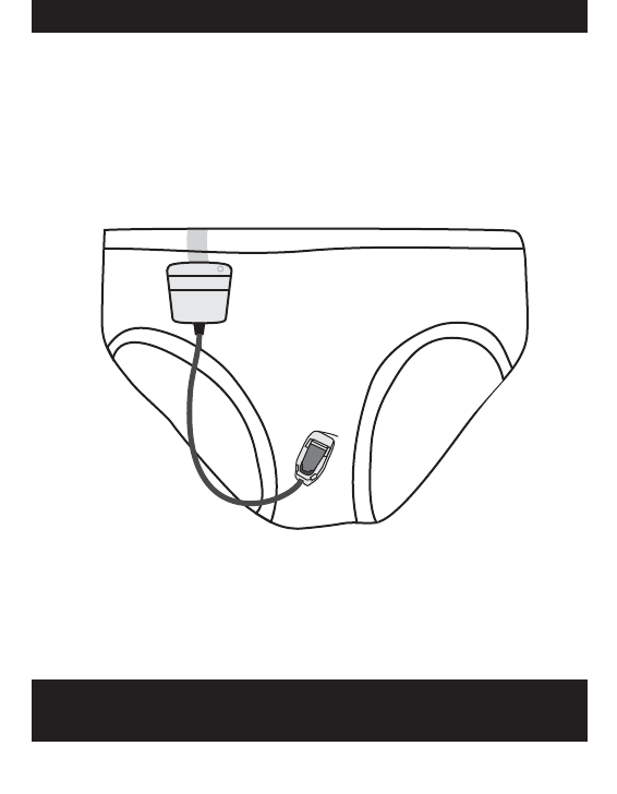 2. Attach the small transmitter (Tx) to the outside of the underpants
