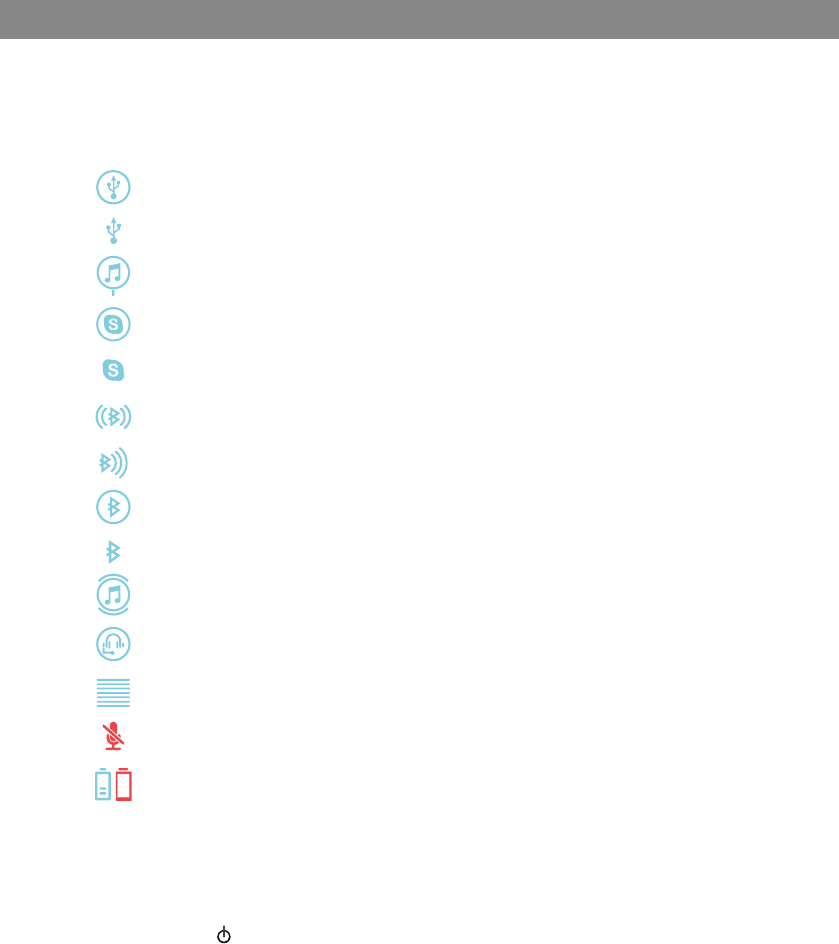 Steady blue light Microphone is enabled/call in progress (Bluetooth, Lync®)