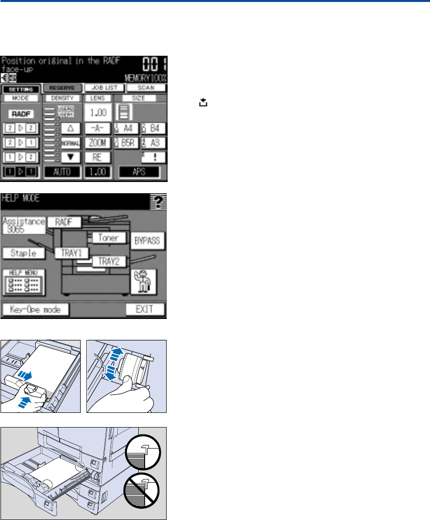 screen can be called up at any time. If there is a problem (e.g. a paper