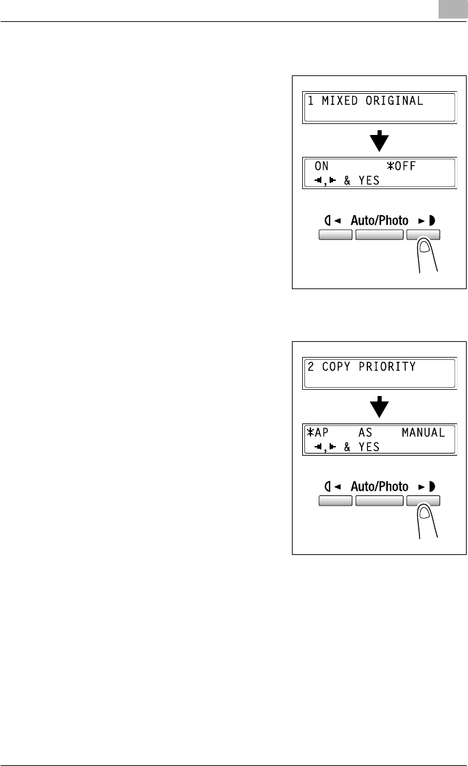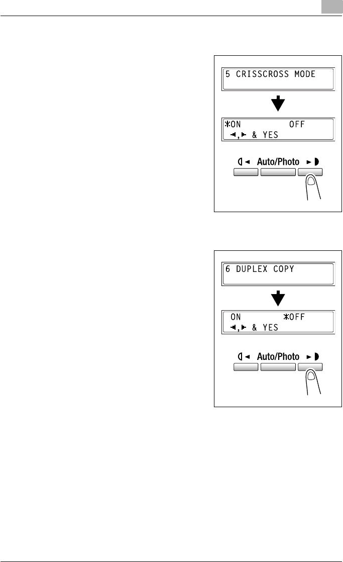 - Selecting the COPY SETTING 1 menu