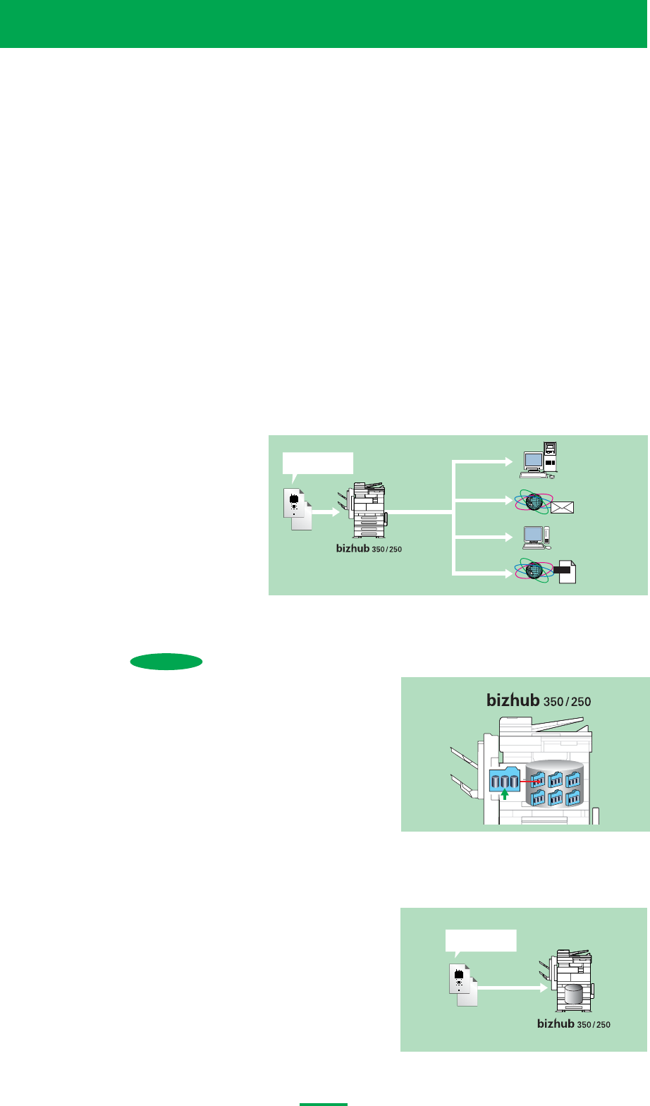 consolidating digital input and output functions, the bizhub 350 / 250 offer features and functions