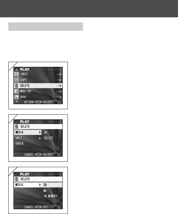 Erase function :Single frame/ designated frames/ all frames/ format