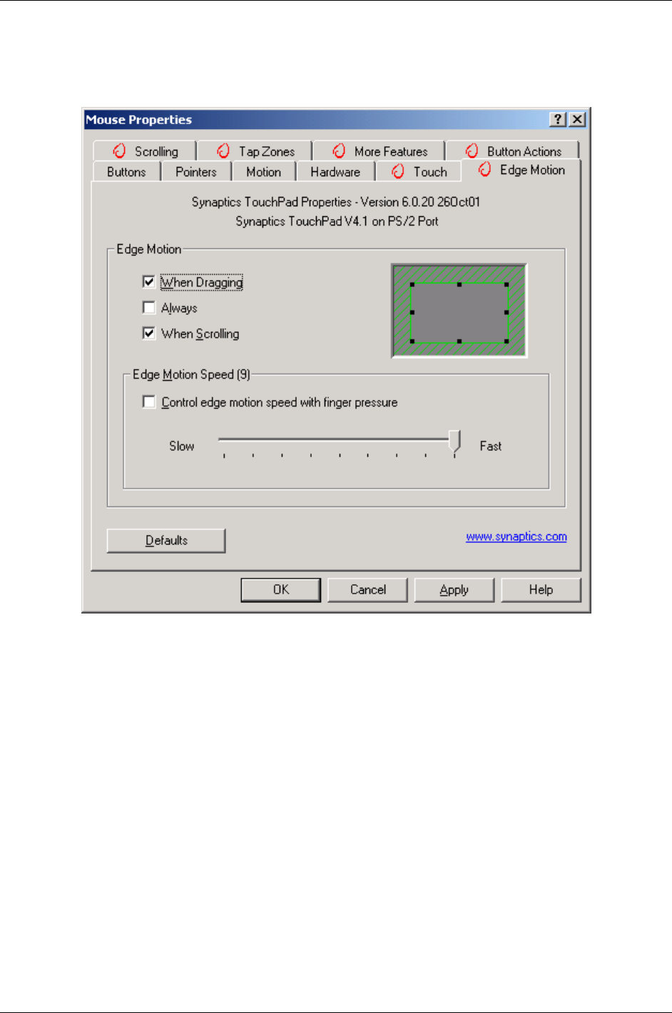 Change the behavior of the touch pad by adjusting the Mouse Properties in the Microsoft Windows Control Panel,