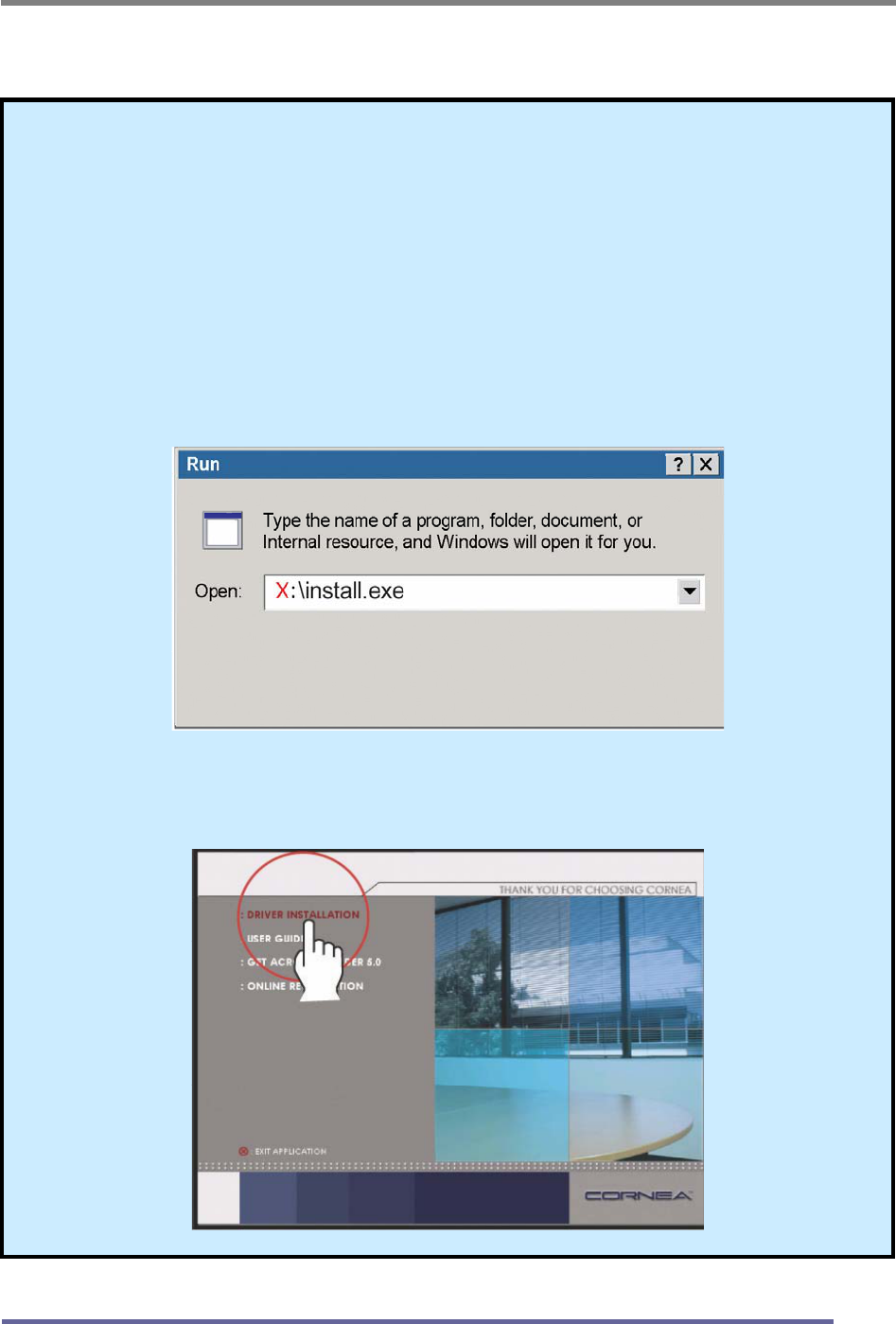 4. Type X:\ install.exe (replace the letter “X” with the letter