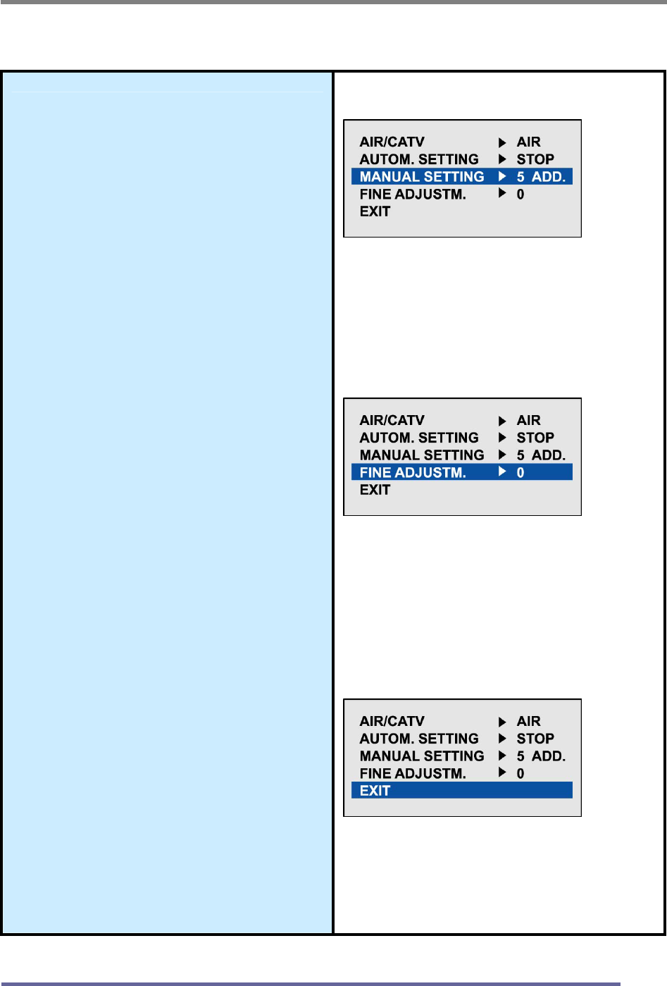 Pressing the SELECT button (repeatedly) to scroll through the various