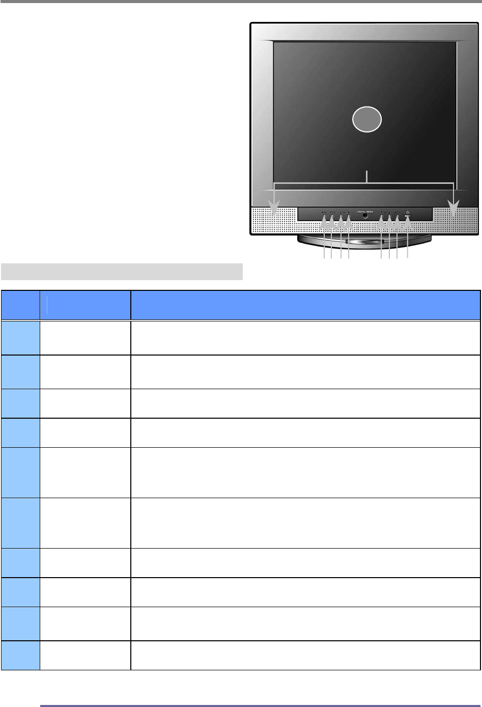 1 Power Key Turns on/off the monitor.