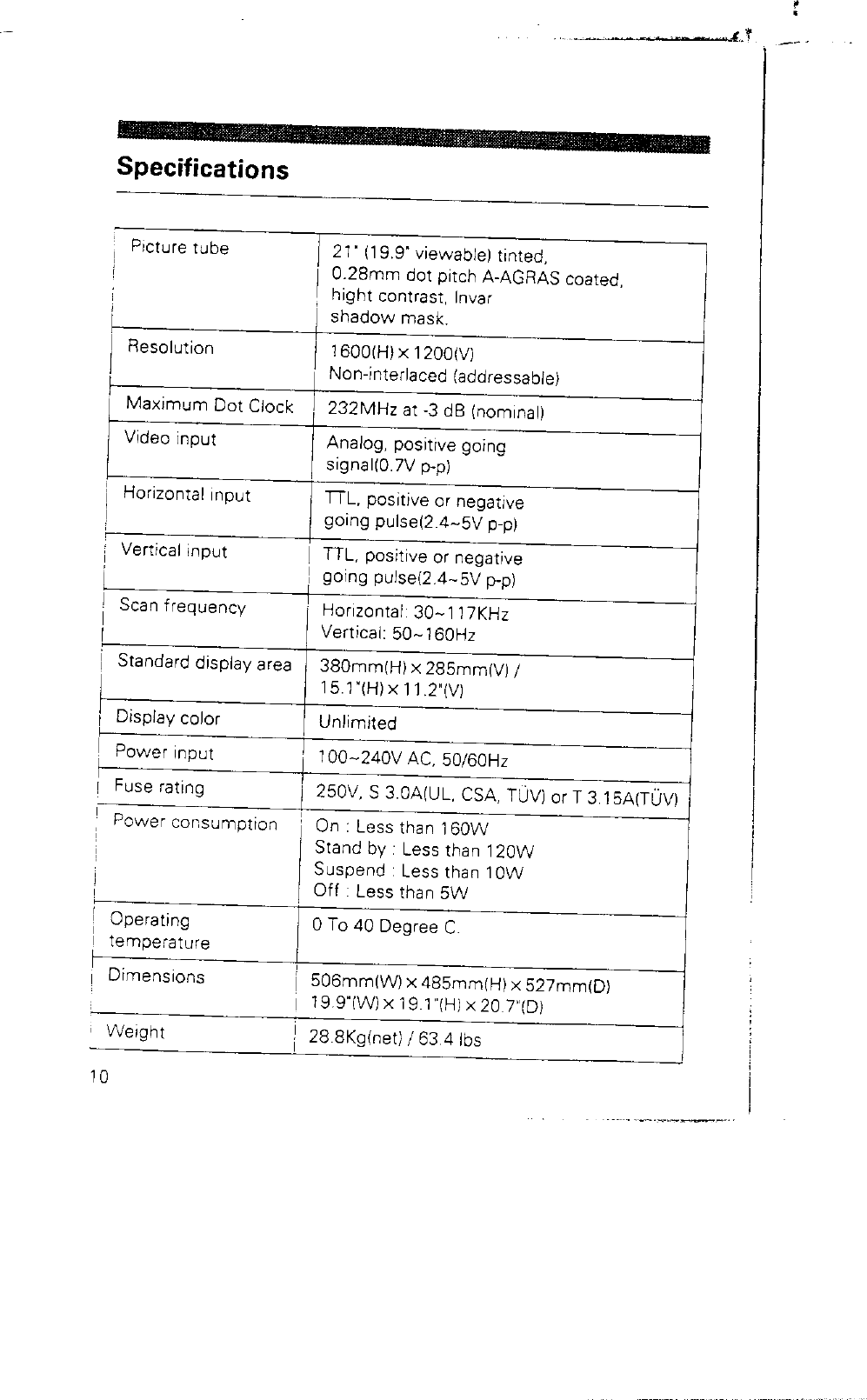 Korea Data Systems Co KD-2100K Color Monitor, 21" 1600 X 1200 User Manual 8