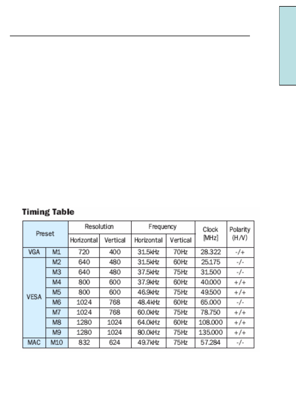•See Timing Guide in this manual with a list of refresh rates and