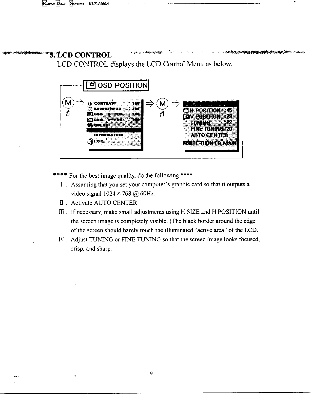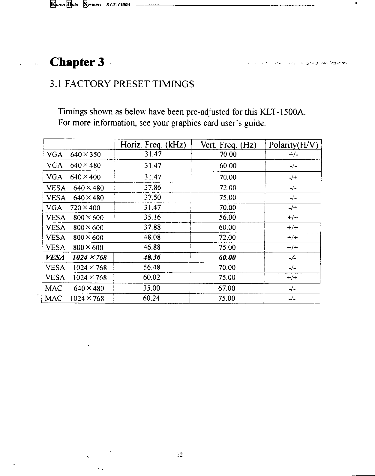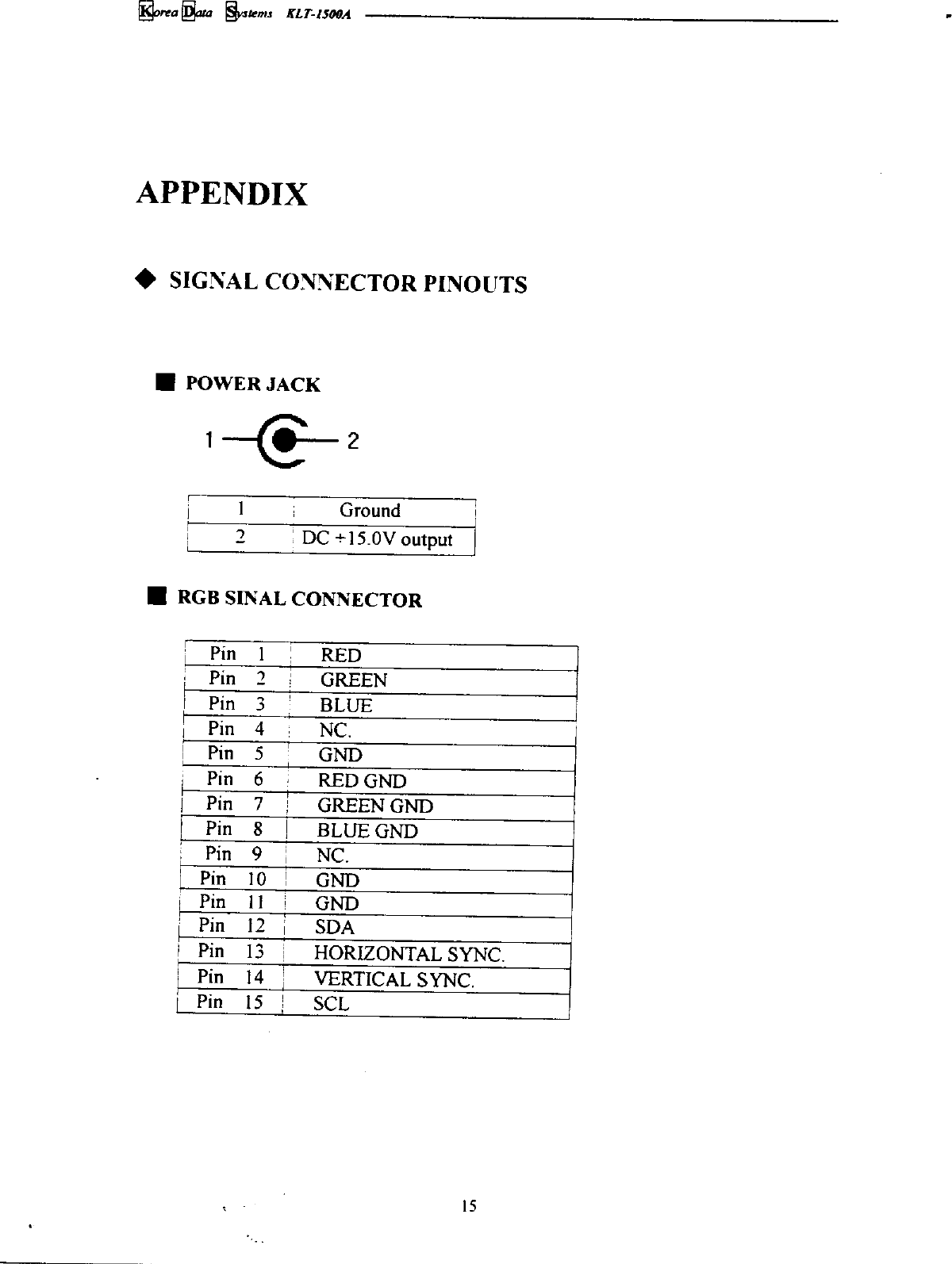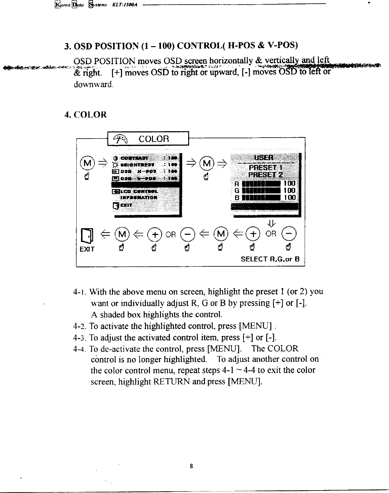 Korea Data Systems Co KLT-1500A Color Monitor 15" TFT Flat Panel 1024 X 768 User Manual 8