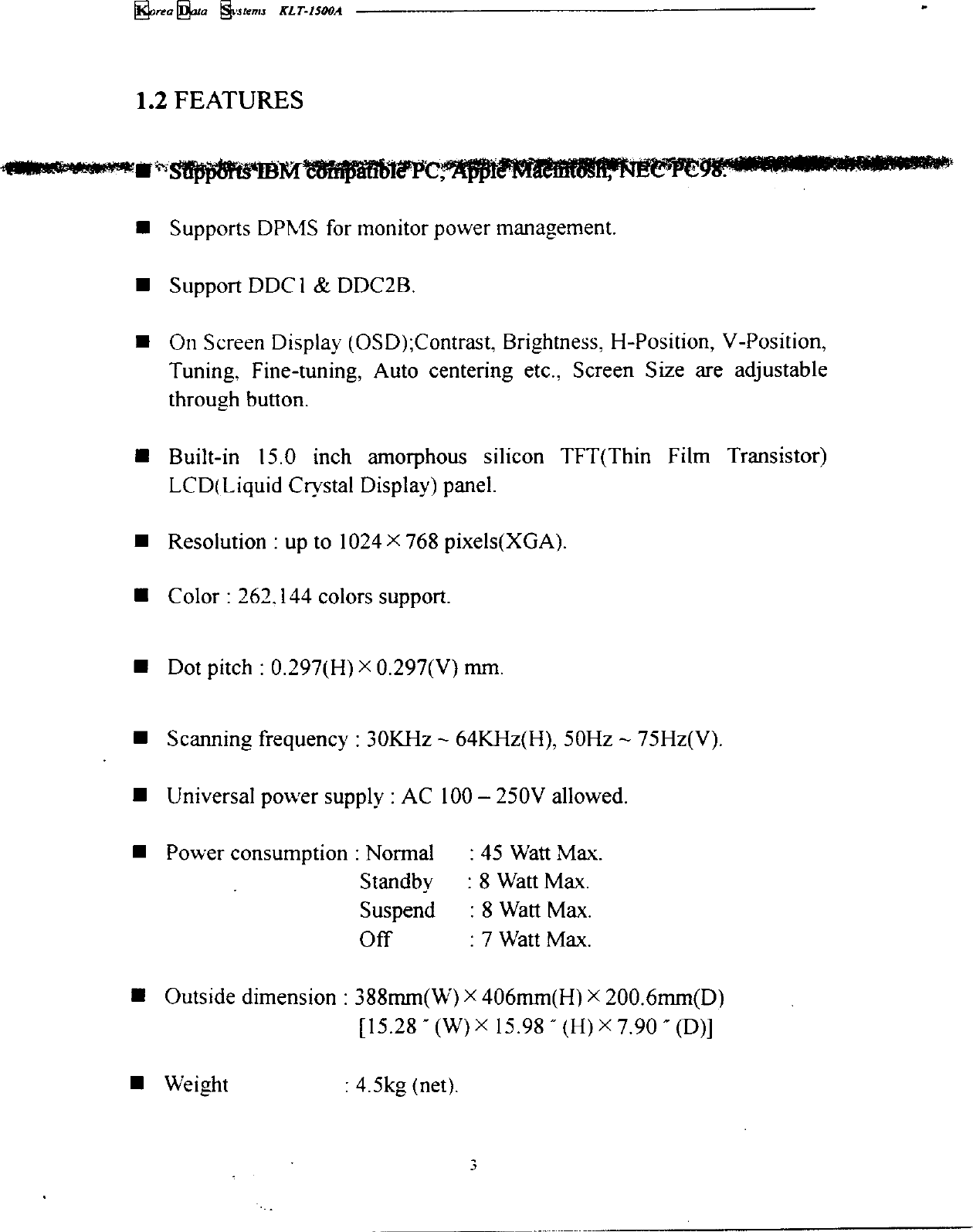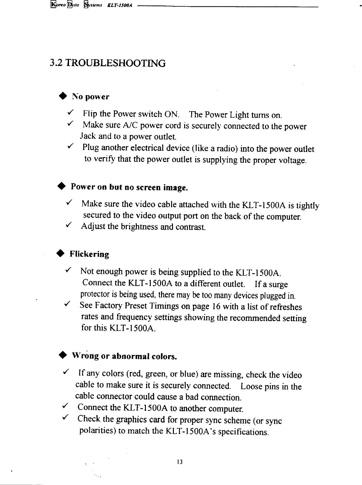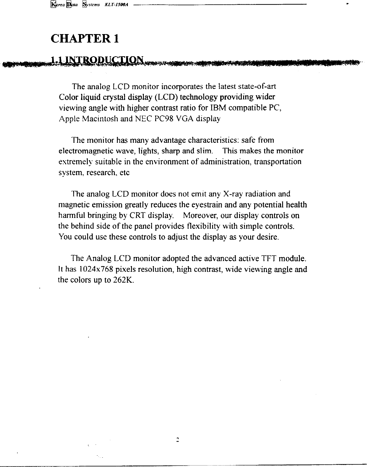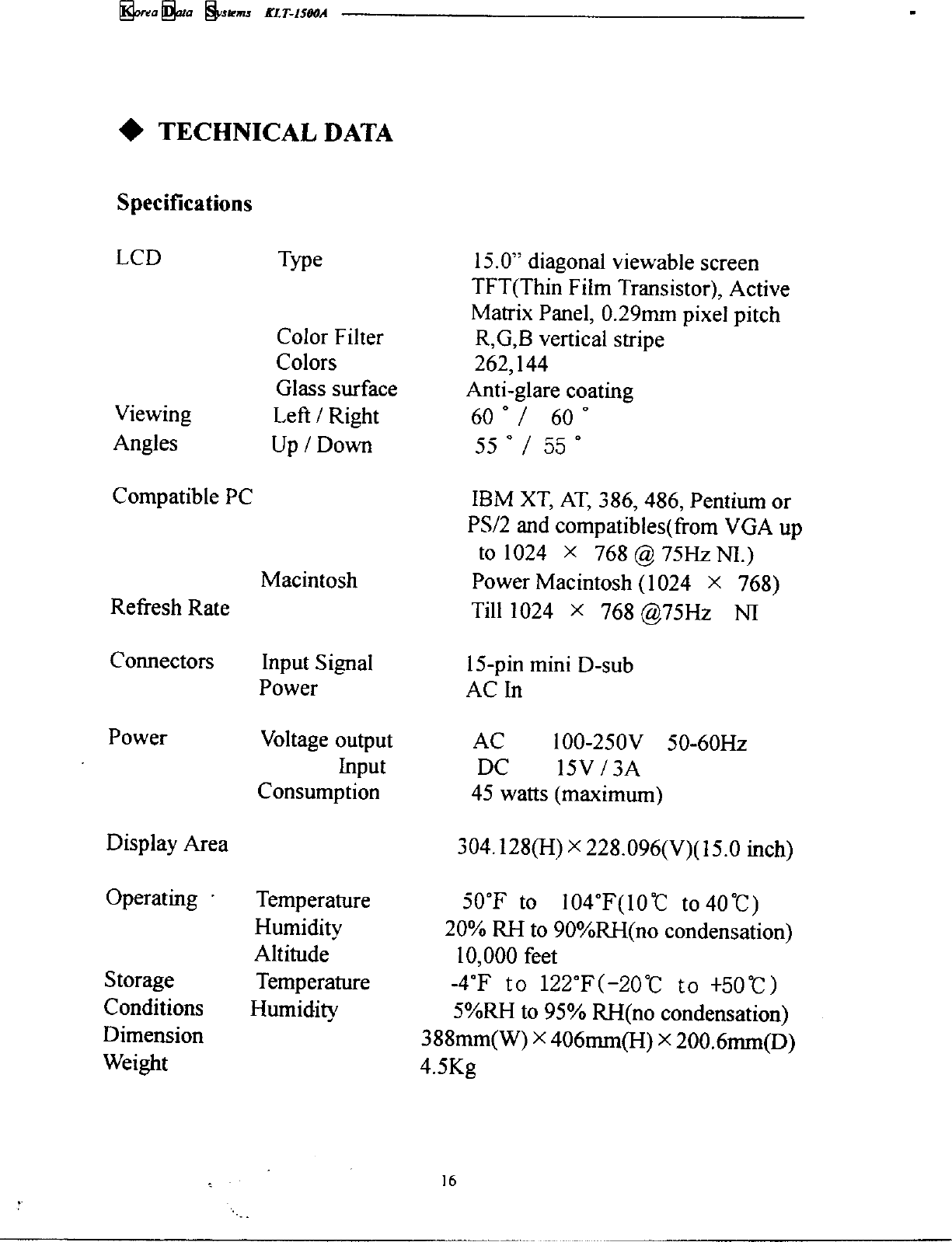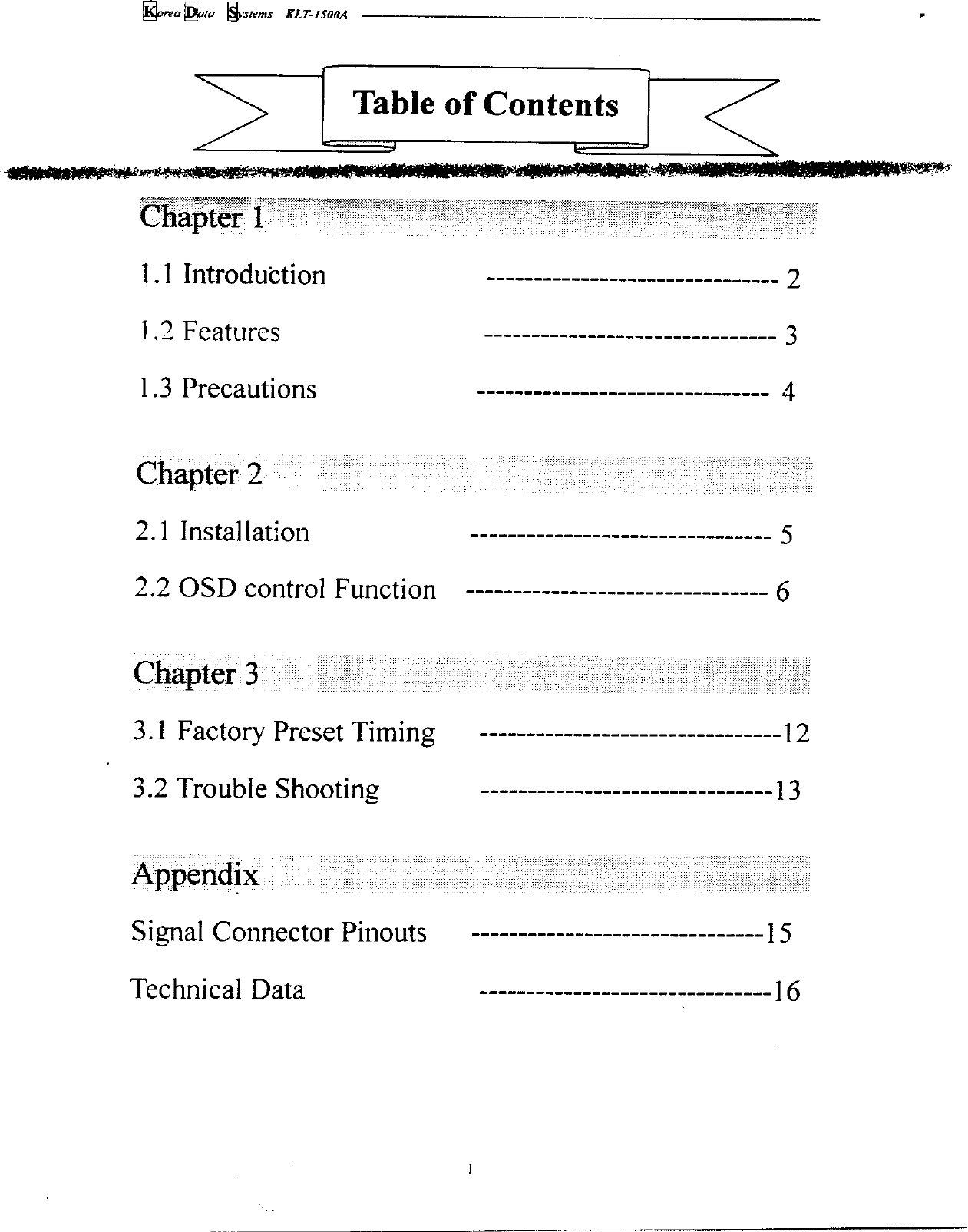 Korea Data Systems Co KLT-1500A Color Monitor 15" TFT Flat Panel 1024 X 768 User Manual 8