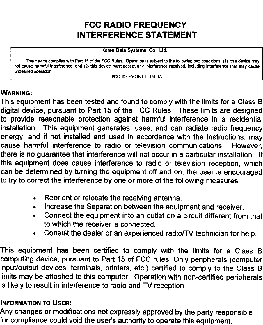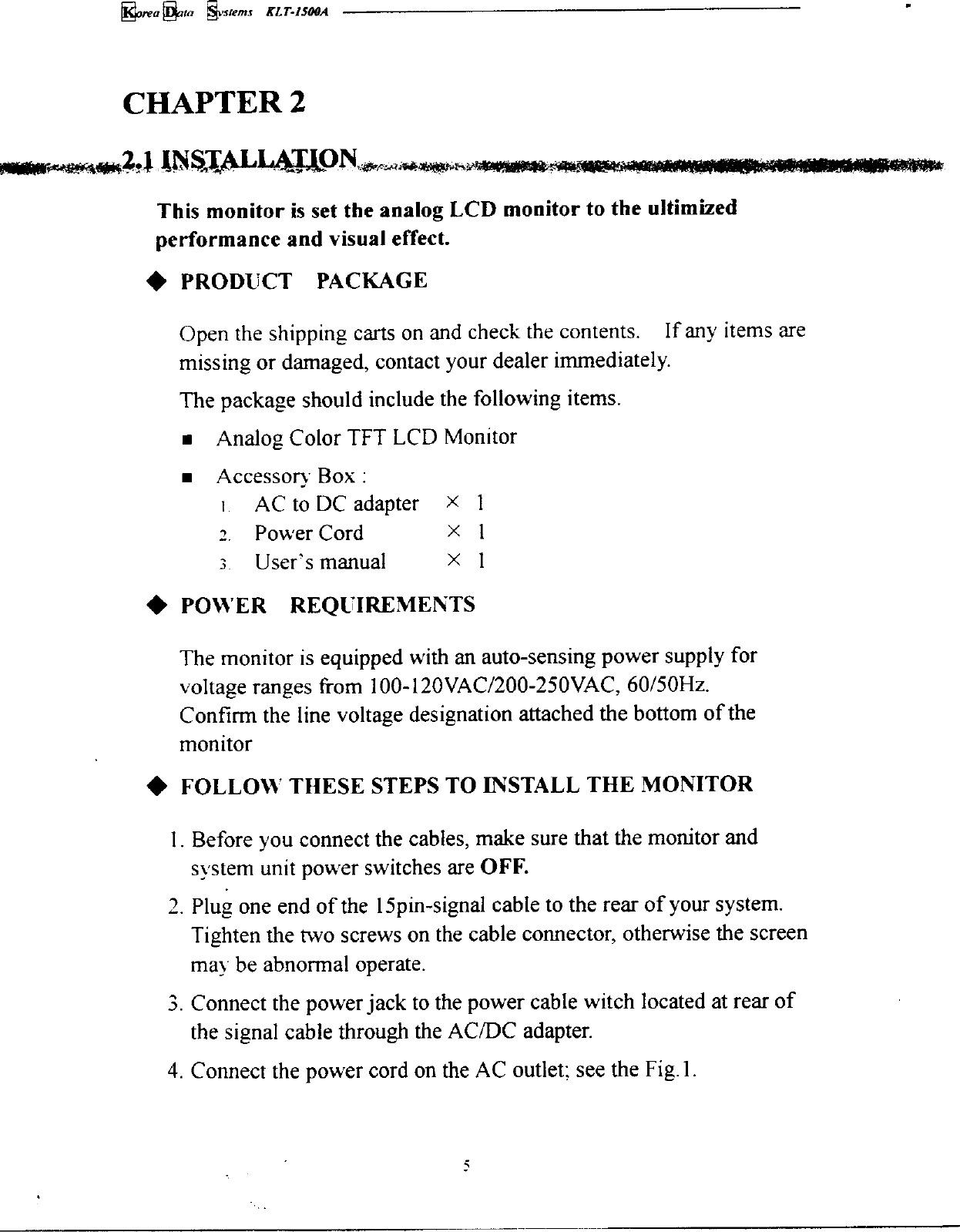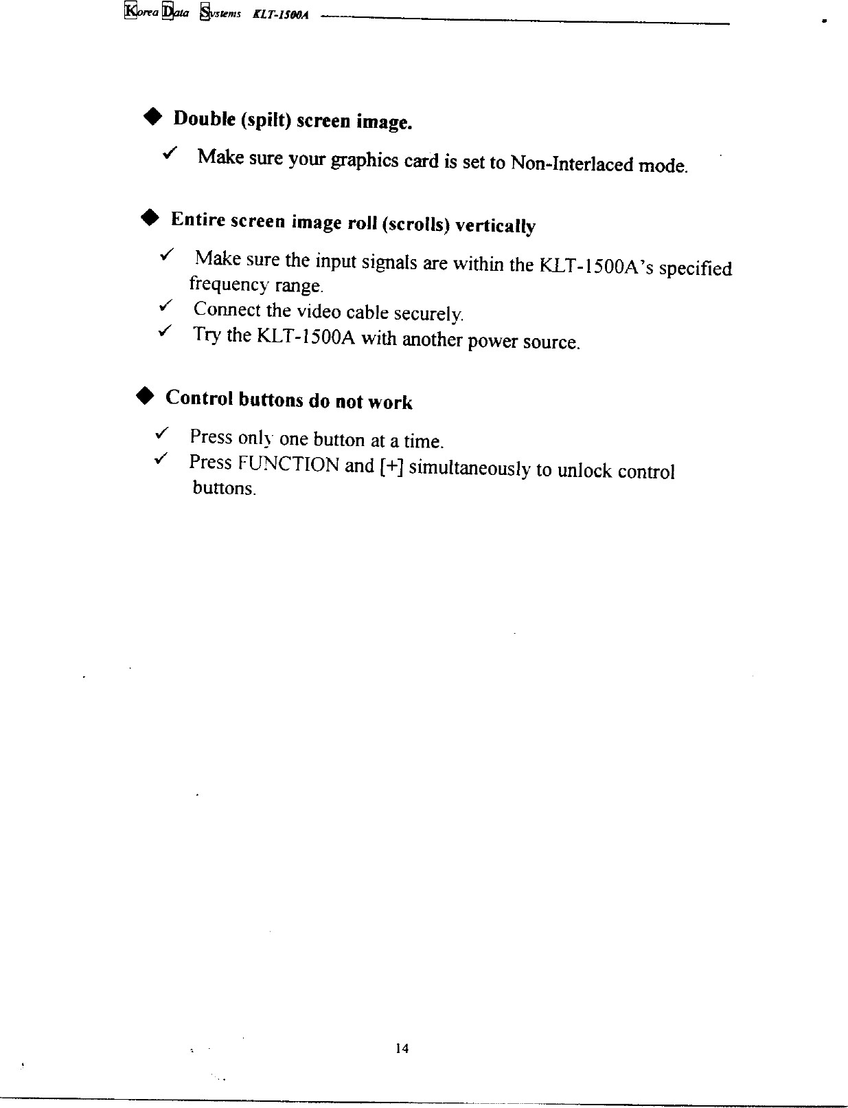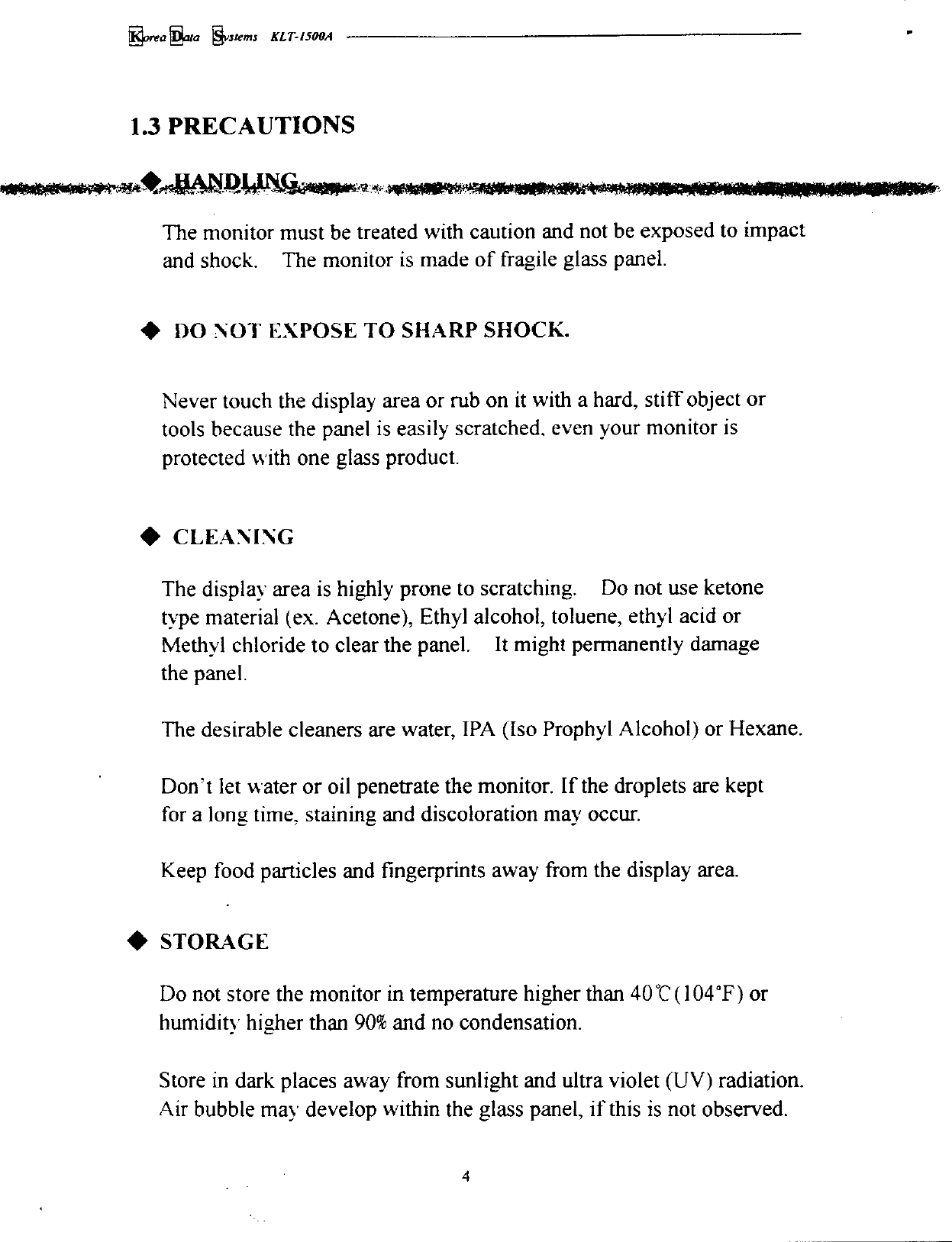 Korea Data Systems Co KLT-1500A Color Monitor 15" TFT Flat Panel 1024 X 768 User Manual 8