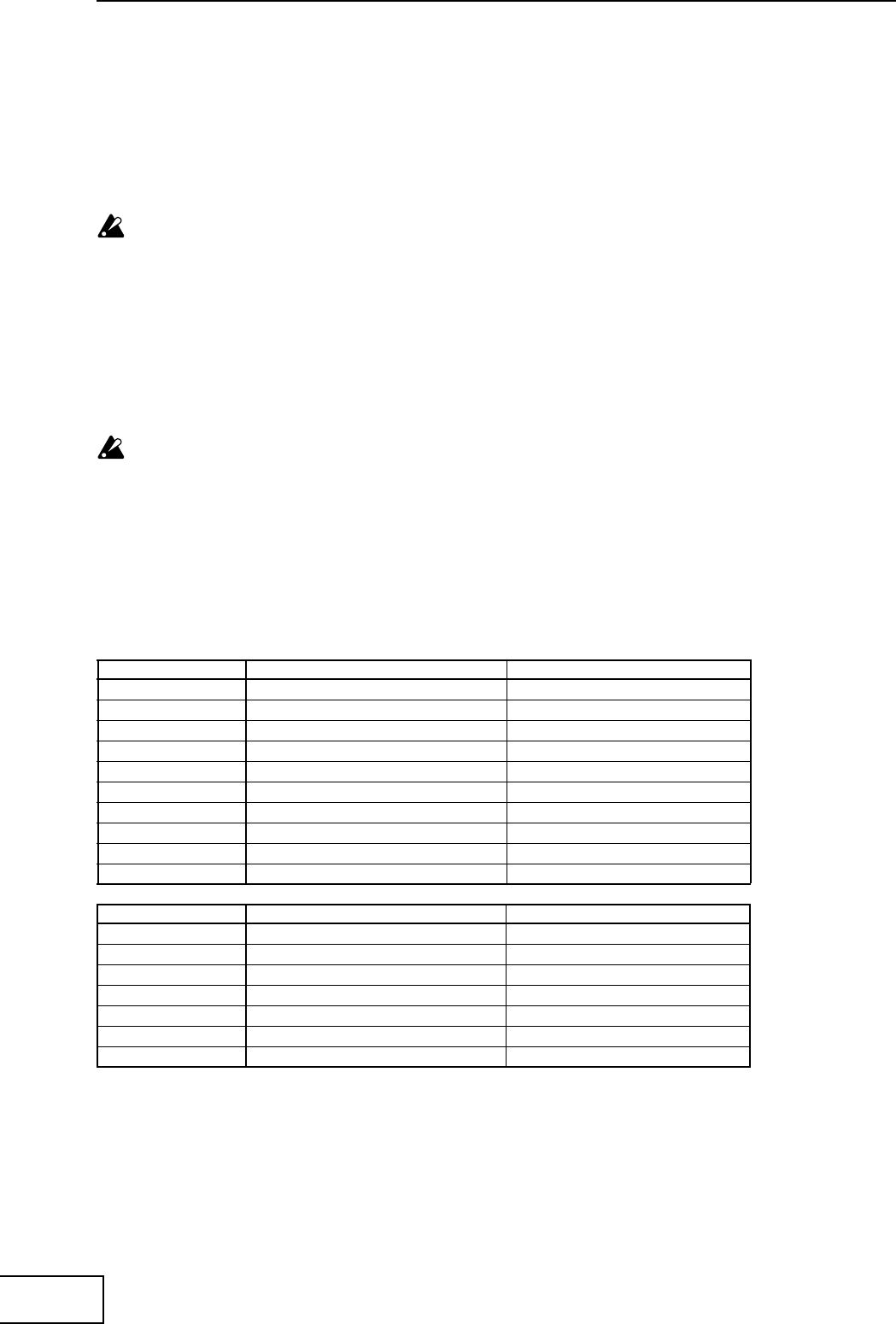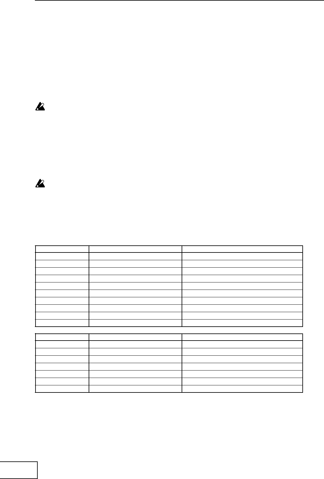 MIDI IMPLEMENTIONの配布については、コルグお客様相談窓口へお問い合わせください。
