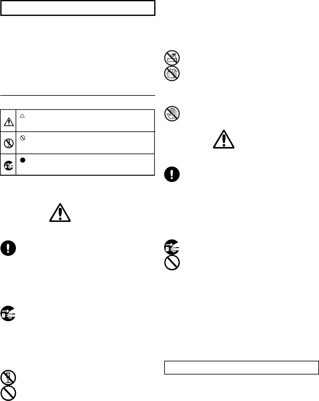 Never set any container with liquid in it near this equipment. If liquid gets into the equipment, it