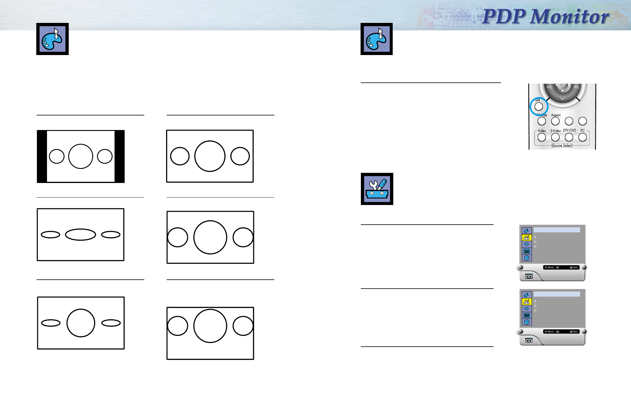 When you press the Aspect button on the remote control, the PDP’s screen mode choices appear in