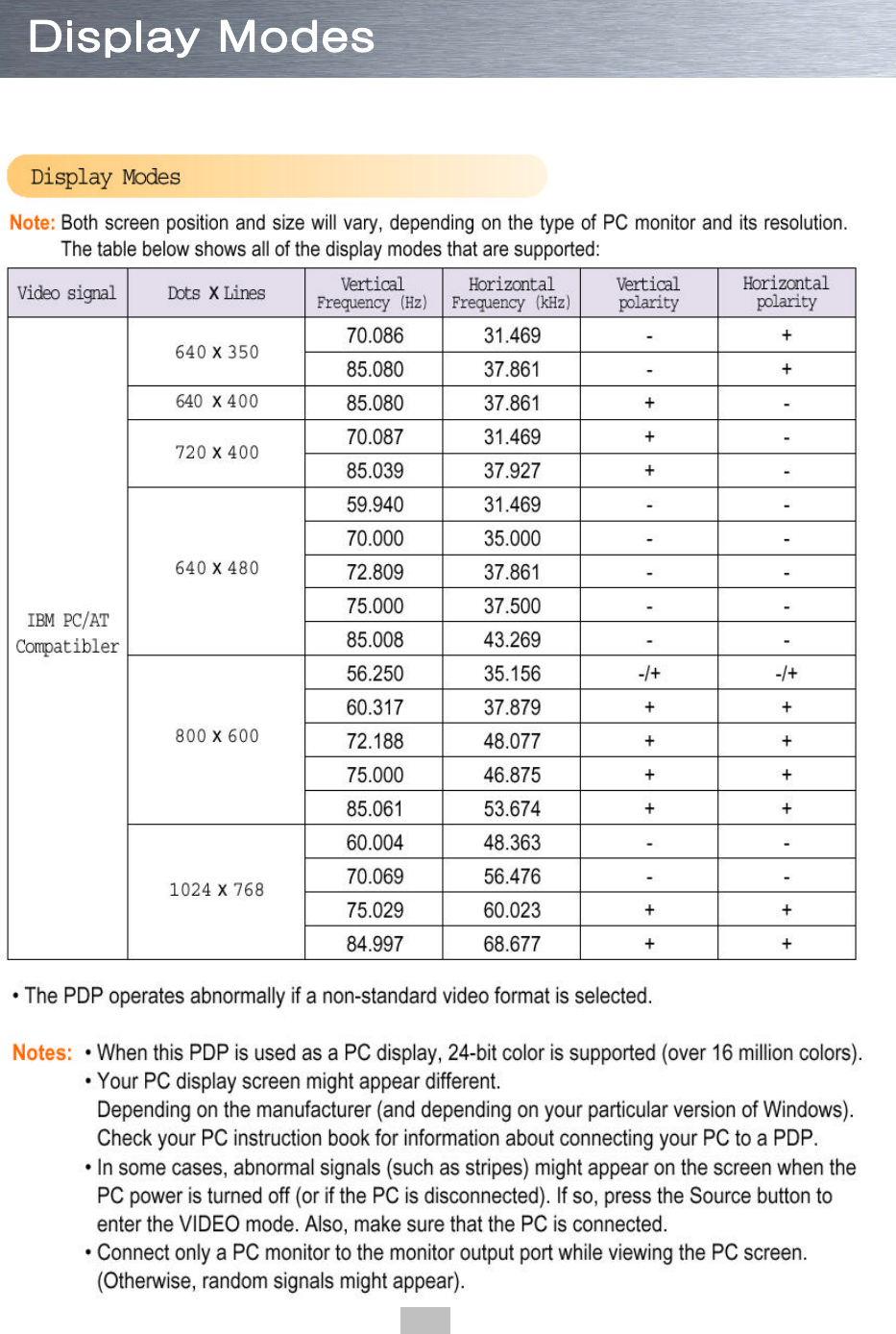 1024x768/85Hz(PC), 1280x1024(DVI)