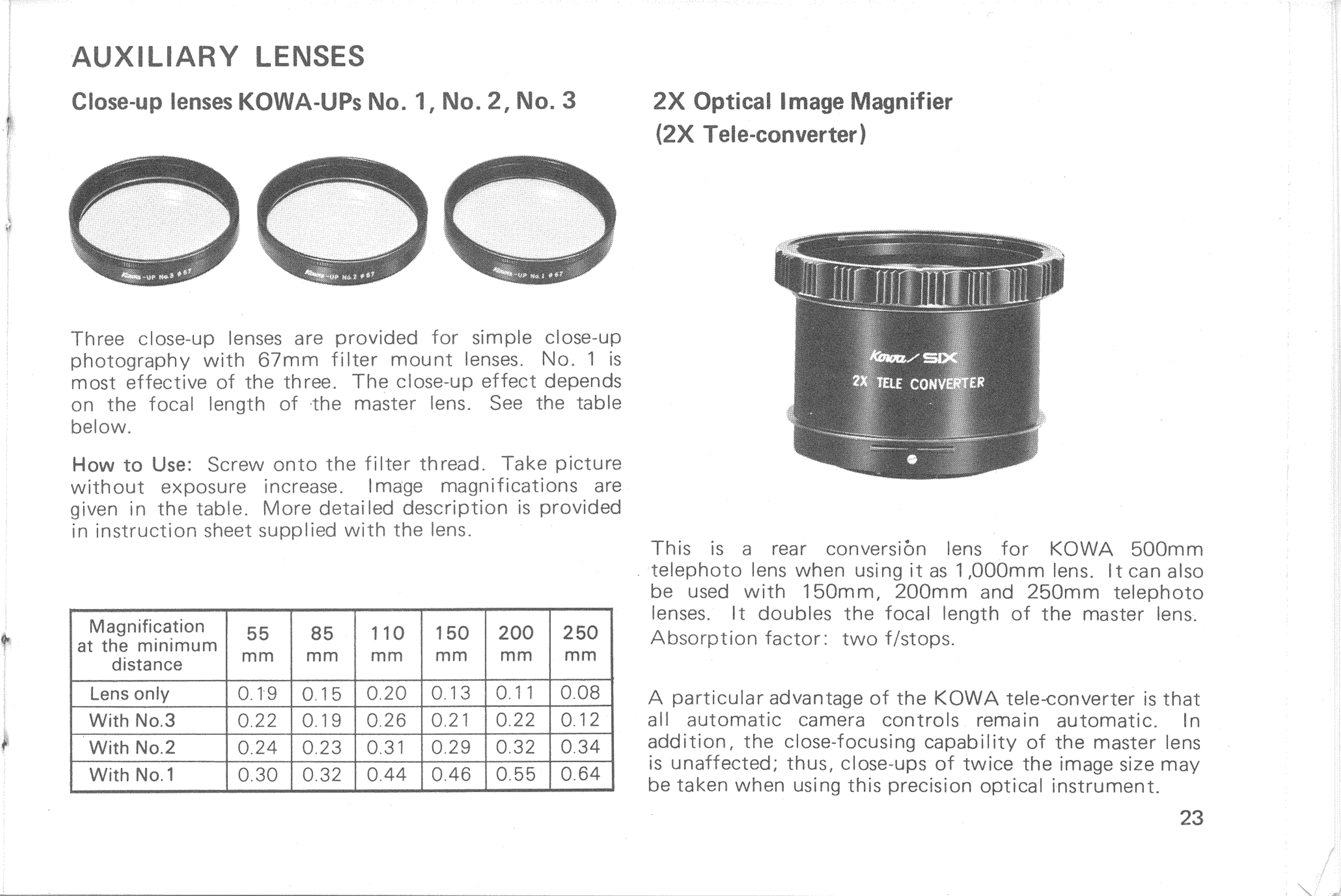 Kowa Super 66 Owners Manual