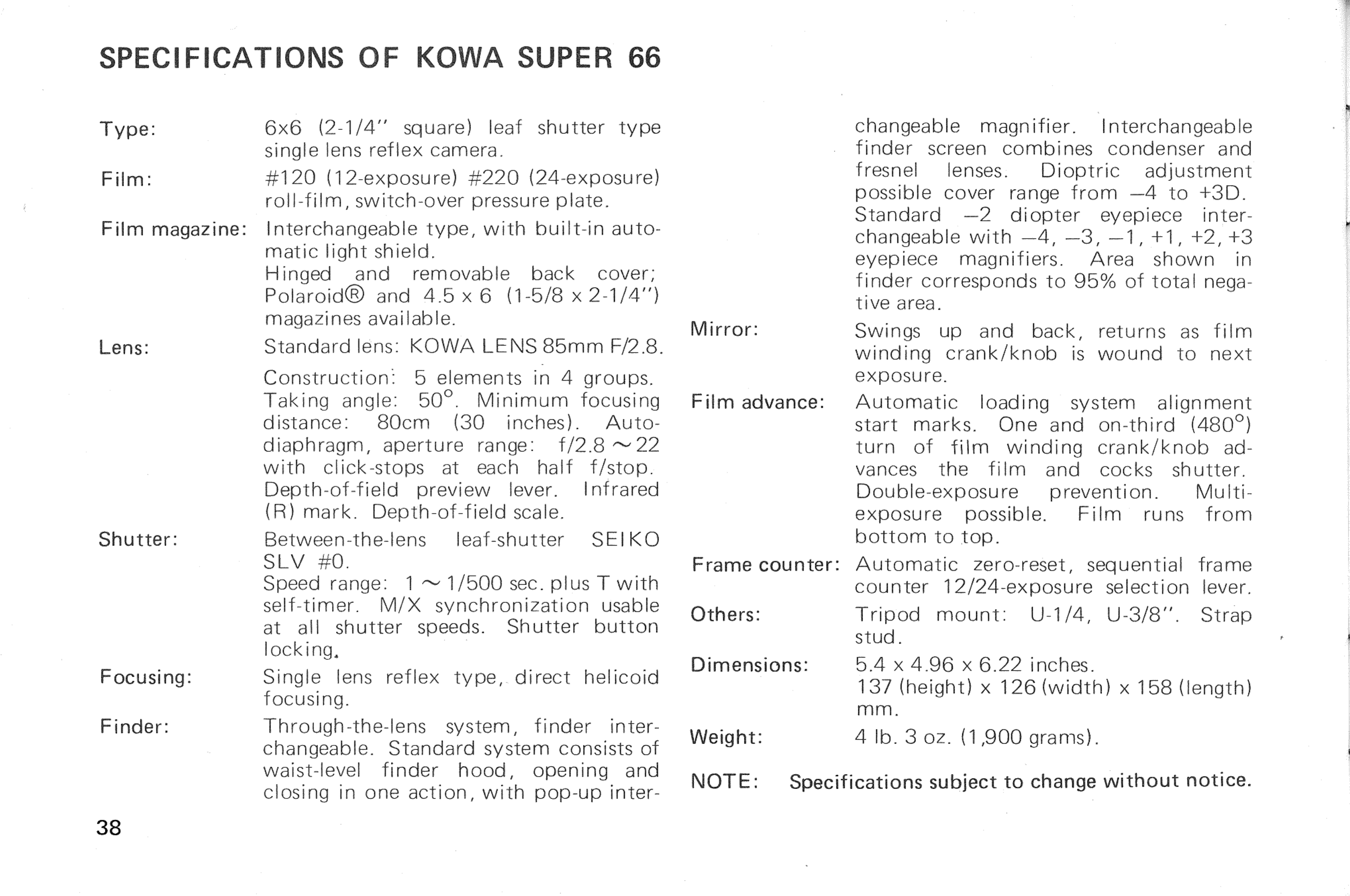 Super 66 - Owner's Manual super_66_en Free User Guide for Kowa Camera, Manual
