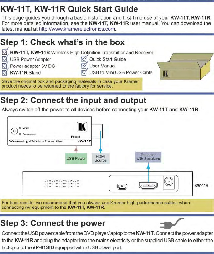 Kramer Electronics KW11-R KW-11R User Manual KW 11T