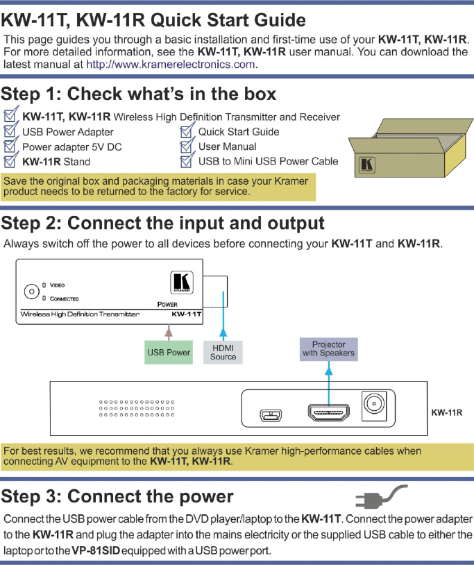 Kramer Electronics KW11-T01 HD wireless video transmitter User Manual KW 11T