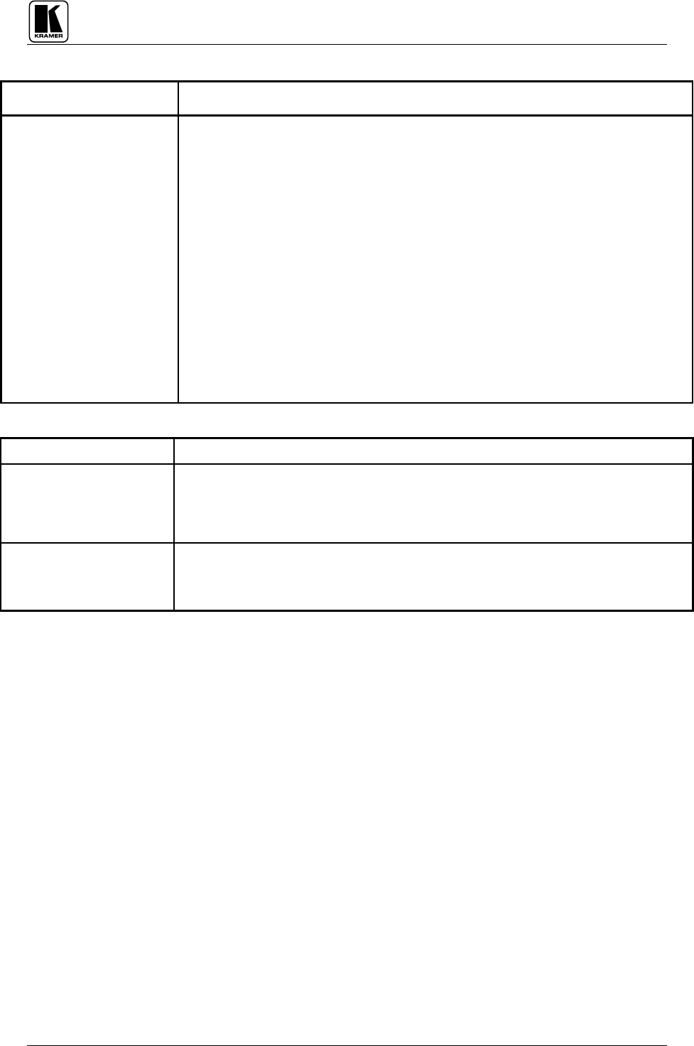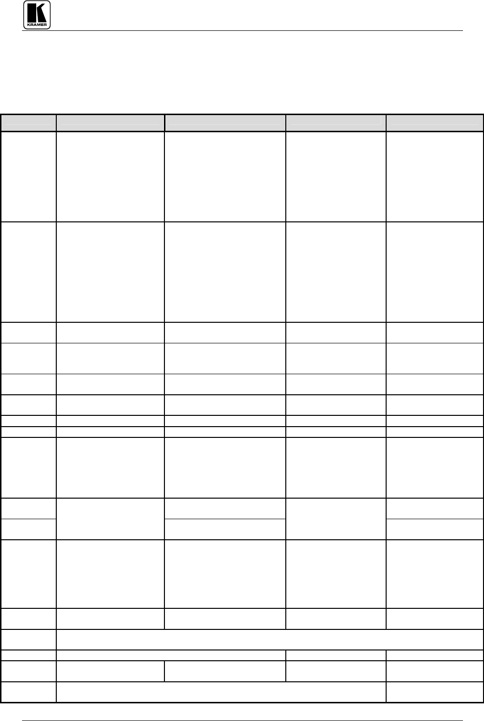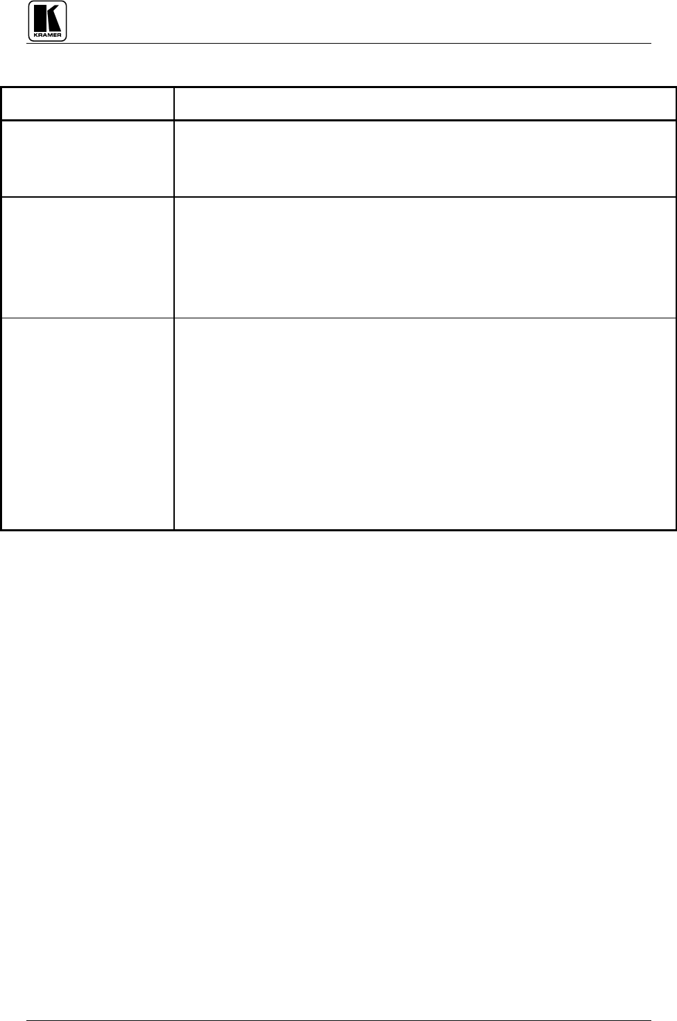 NOTE: All products returned to Kramer for service must have prior approval that may be obtained from