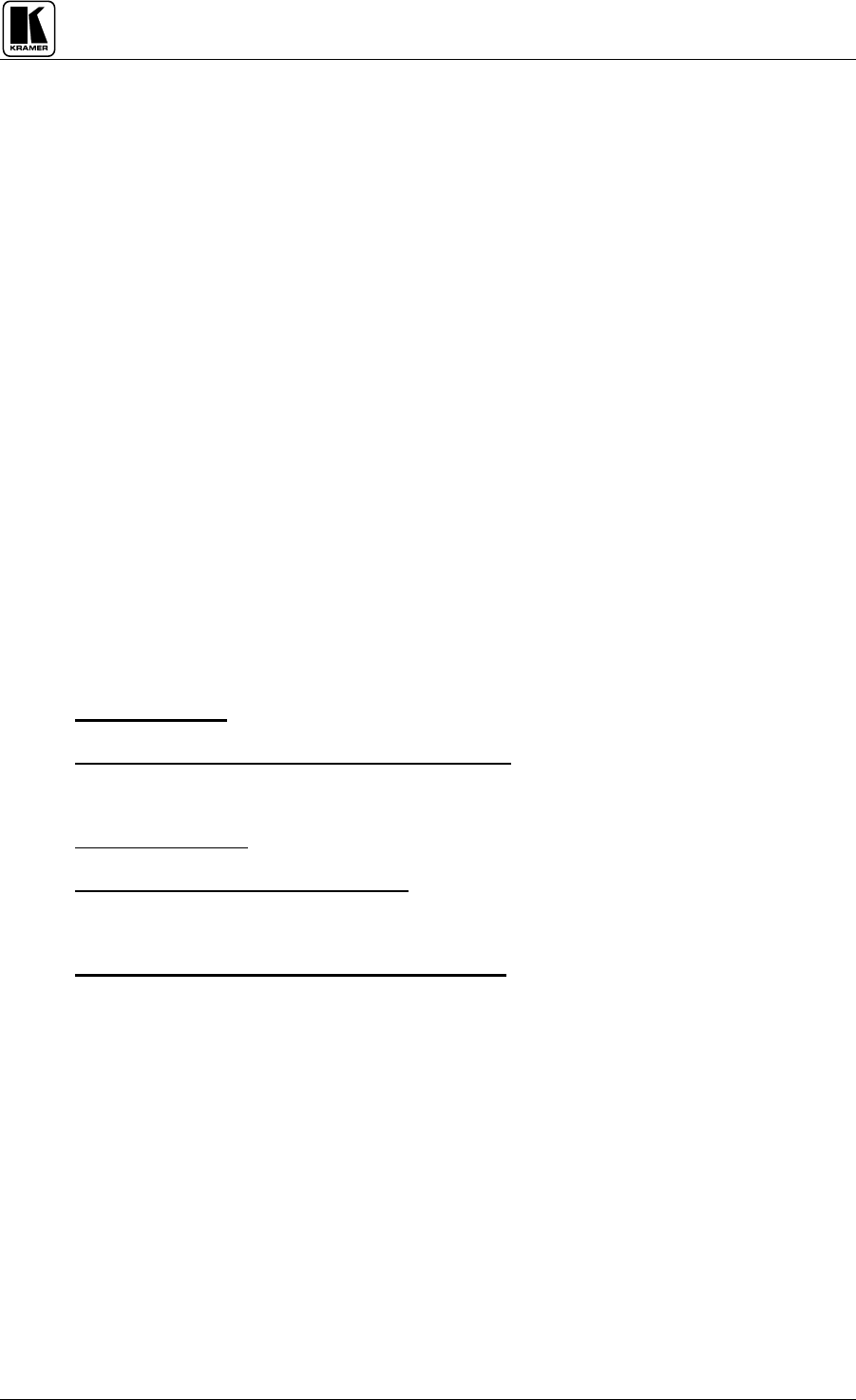 1) Any product not distributed by Kramer or not purchased from an authorized Kramer dealer. In order to