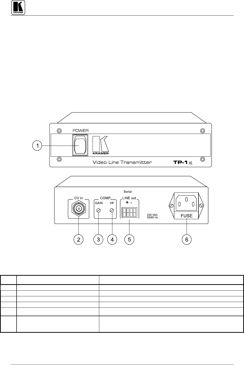 TABLE 1:TP-1XLFRONT/REAR PANEL FEATURES
