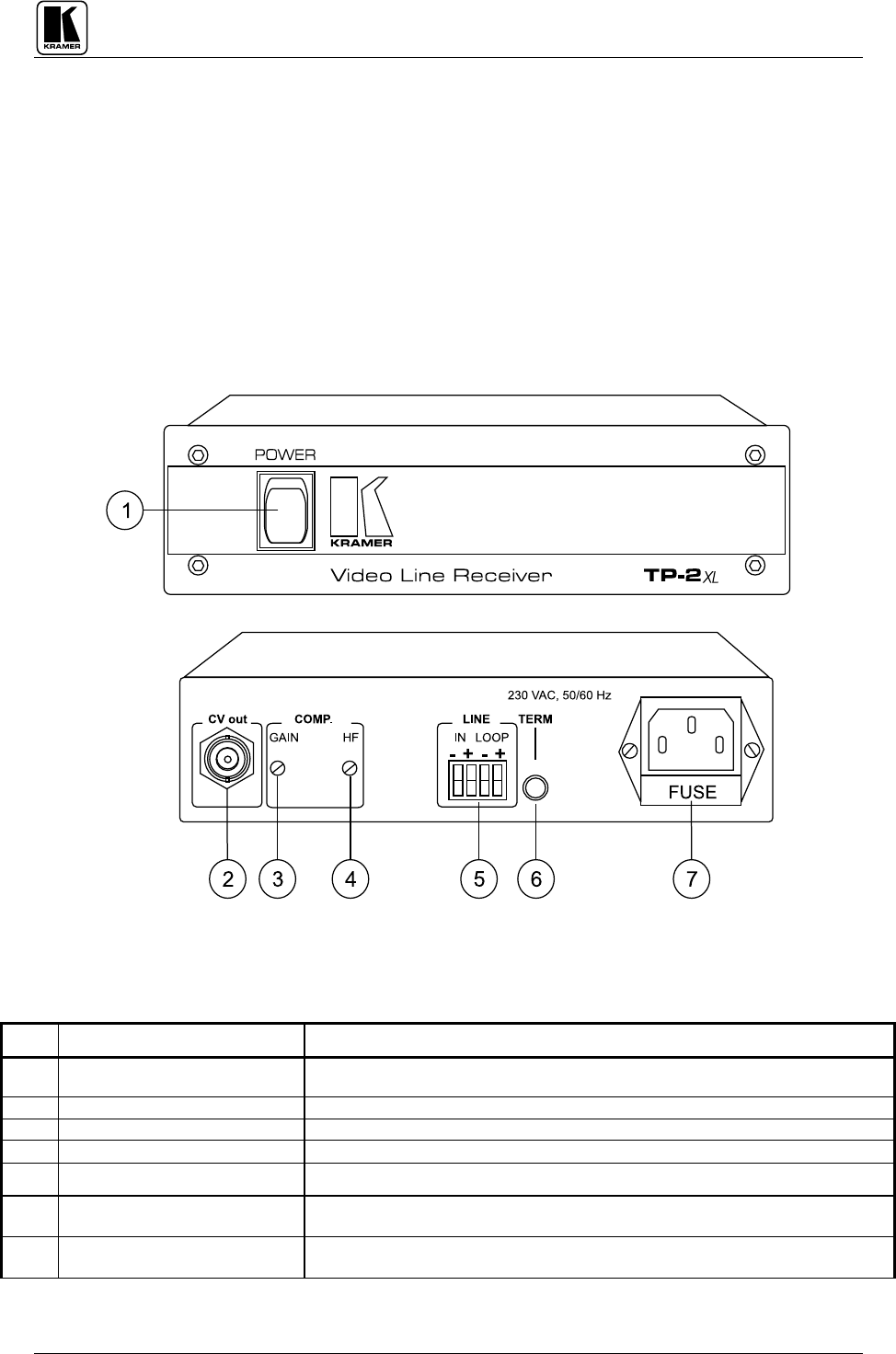 TABLE 2:TP-2XLFRONT/REAR PANEL FEATURES