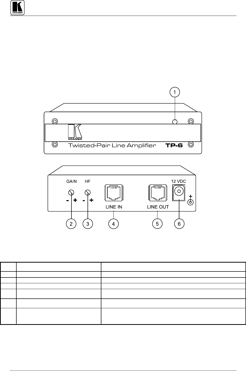 TABLE 3:TP-6 FRONT/REAR PANEL FEATURES