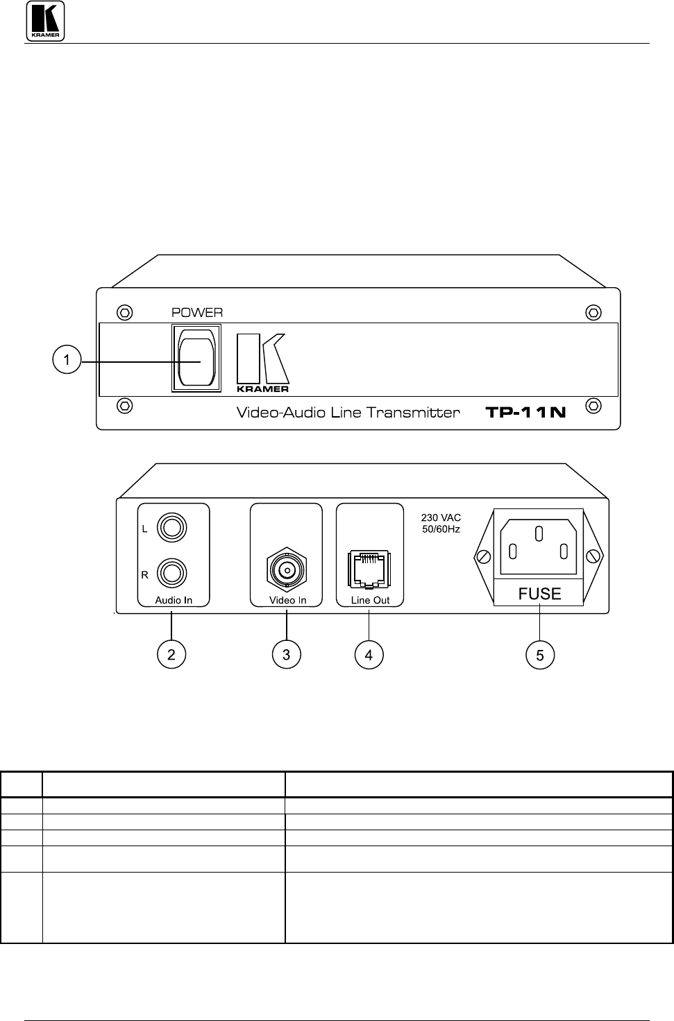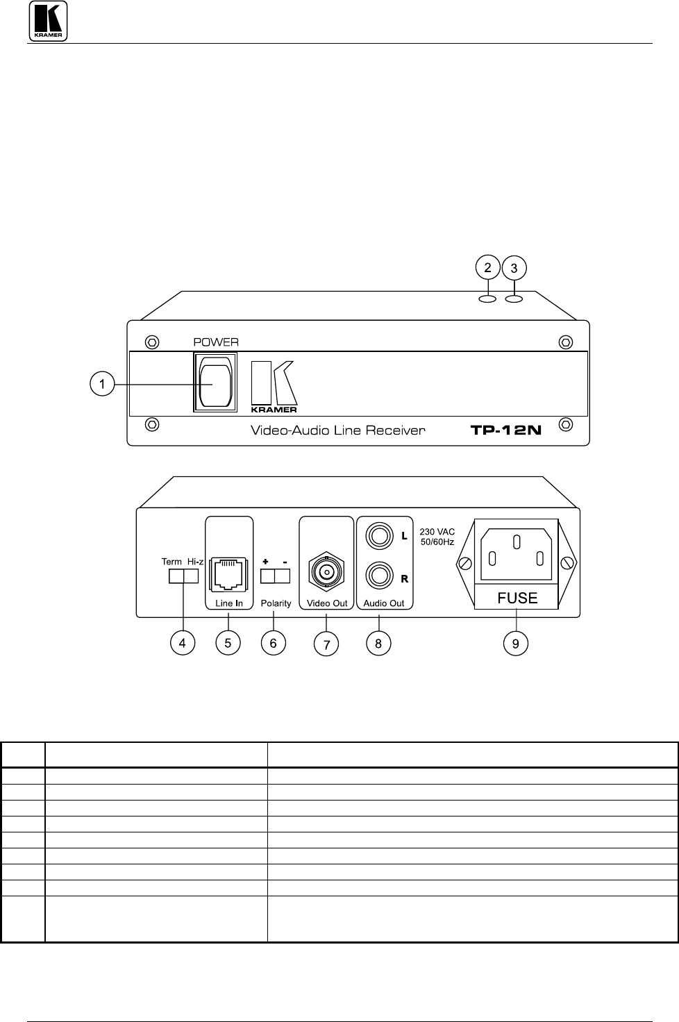 TABLE 5:TP-12N FRONT/REAR PANEL FEATURES
