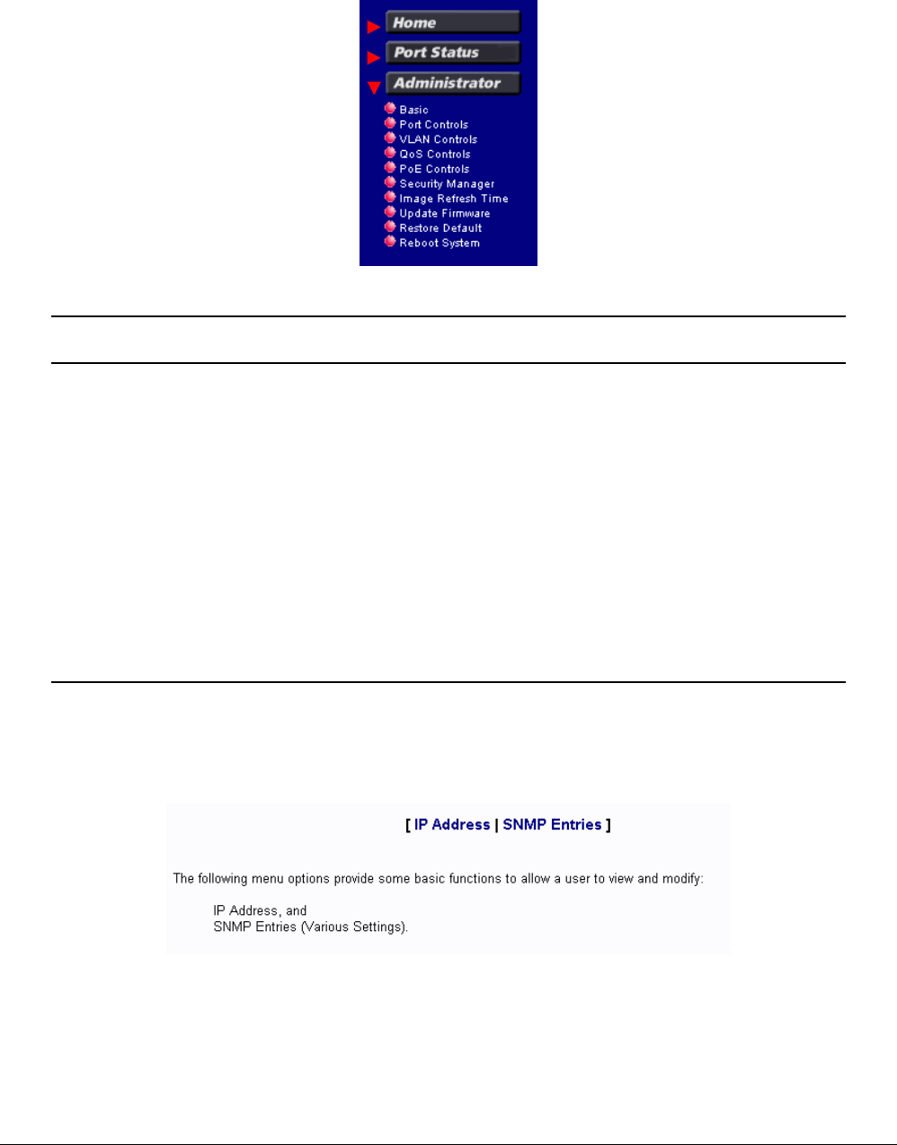 menu in telnet management interface and Administrator->Basic menu in web management interface.