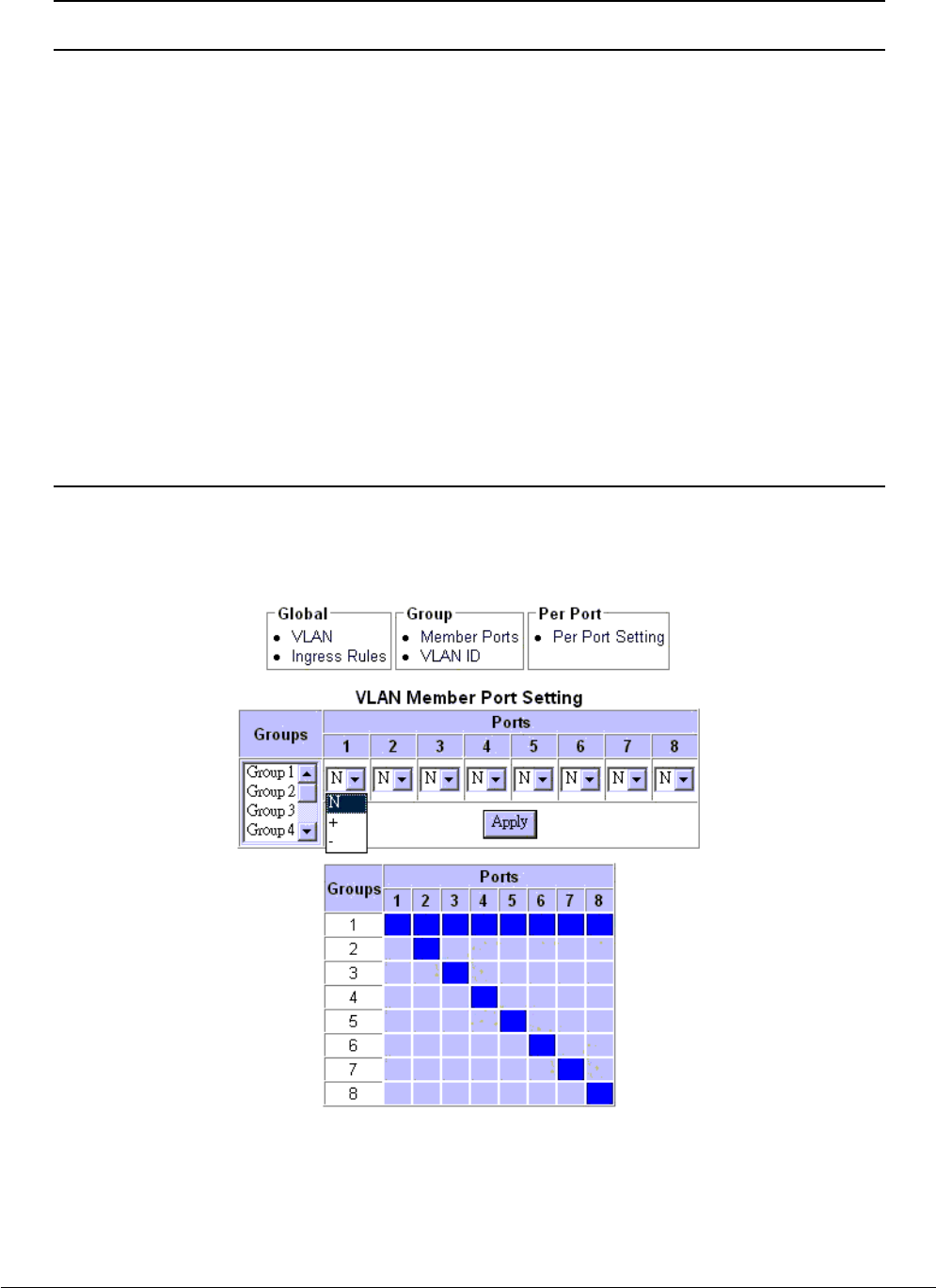 Default VLAN group index 1 (group 1) for Port 1 - Port 8