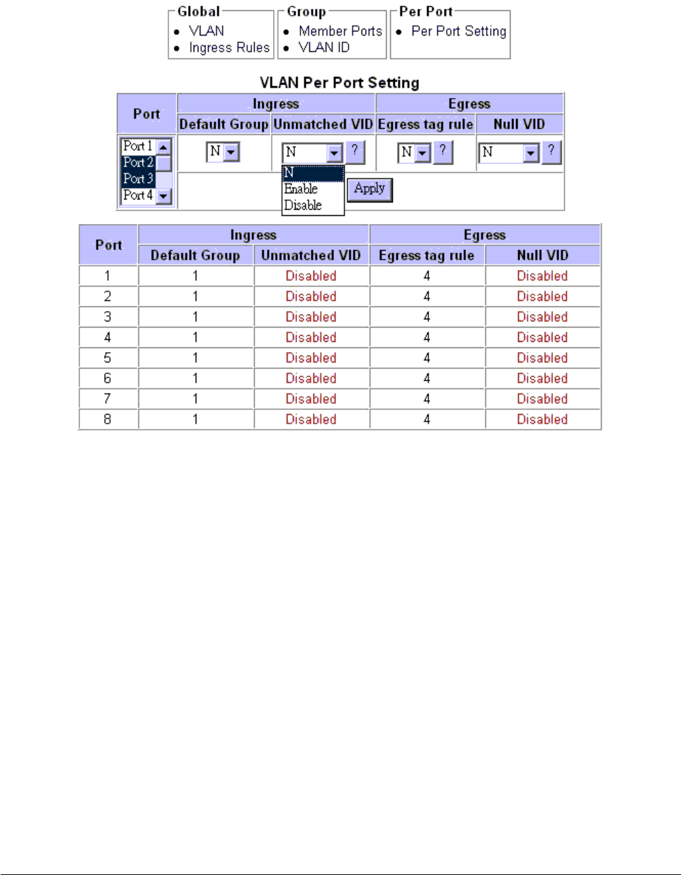 - 3.2.2.3 Unmatched VID Filtering (per port setting)