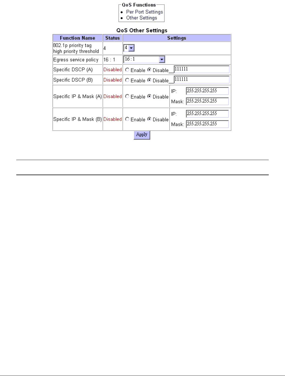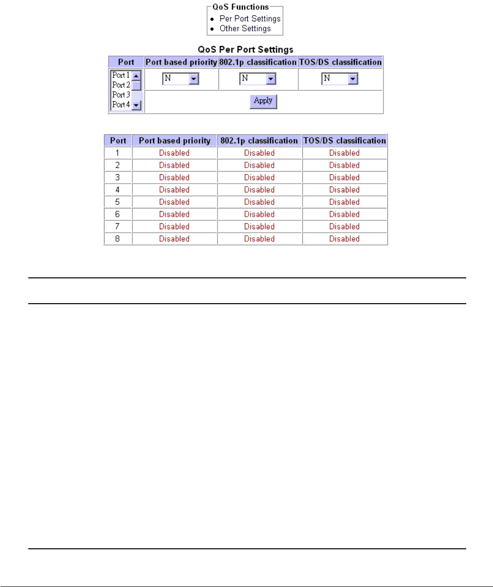 Default TOS/DS classification Disabled for Port 1 - Port 8