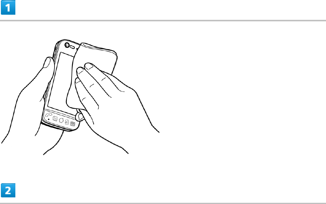 Press a lint-free clean, dry cloth into gaps (Mic, Receiver, Speaker, etc.) to remove any