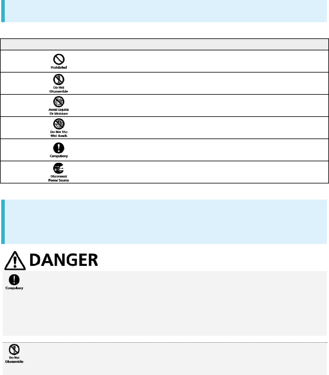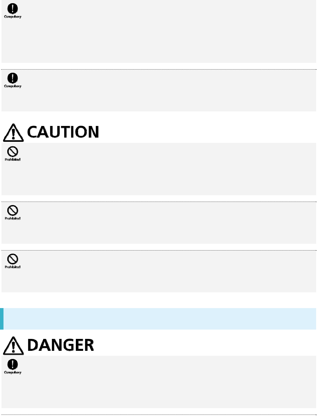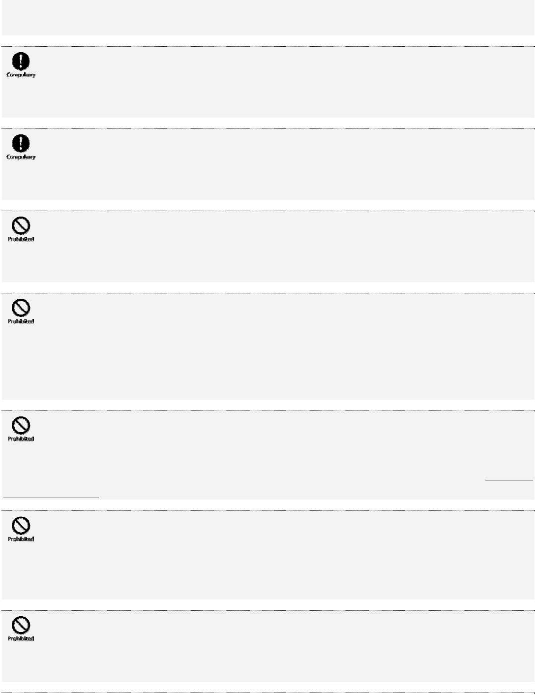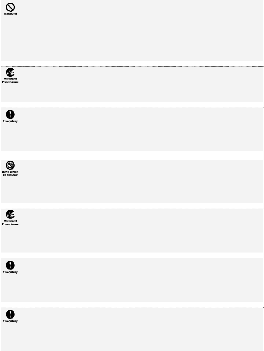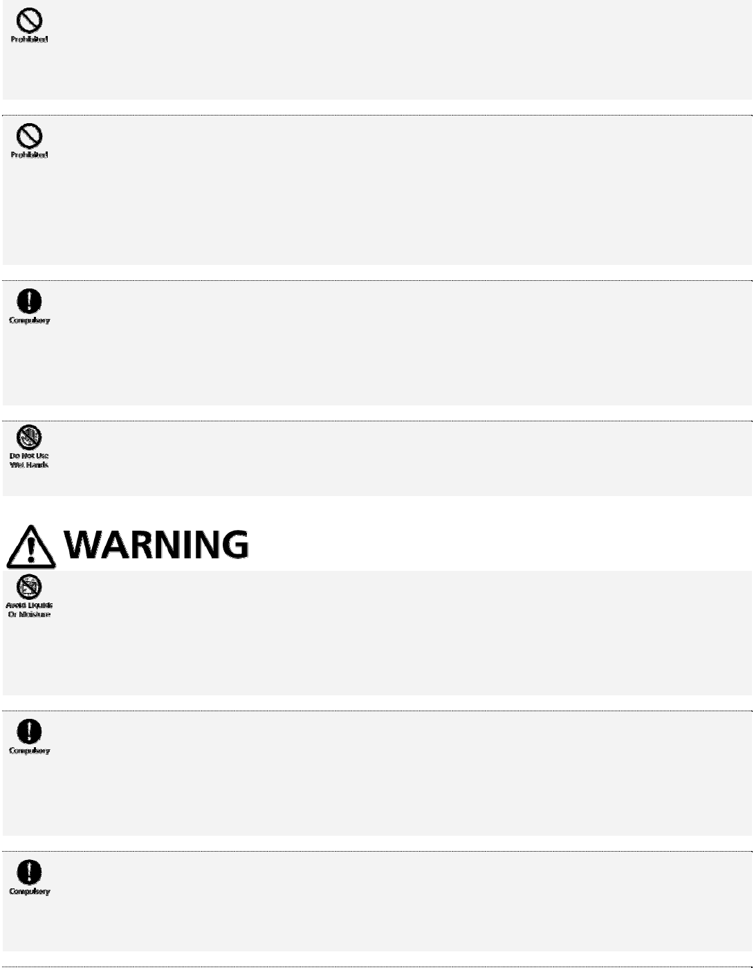 May cause fire, injury, electric shock or malfunction. Also, battery may leak, overheat, rupture or ignite.