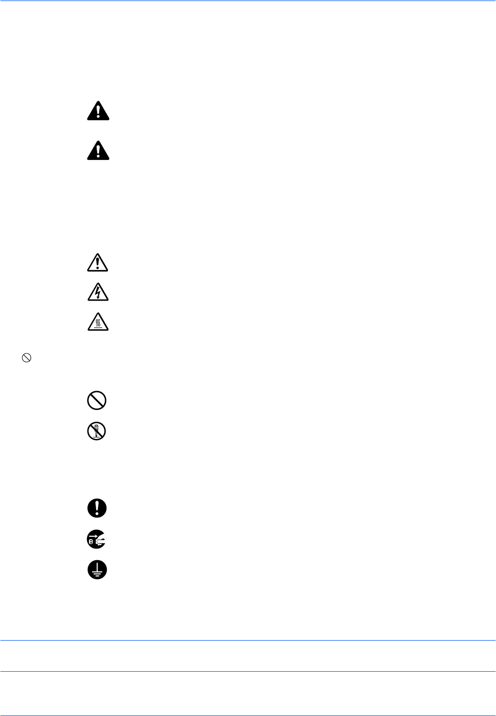 The sections of this guide and parts of the machine marked with symbols are safety warnings meant to protect