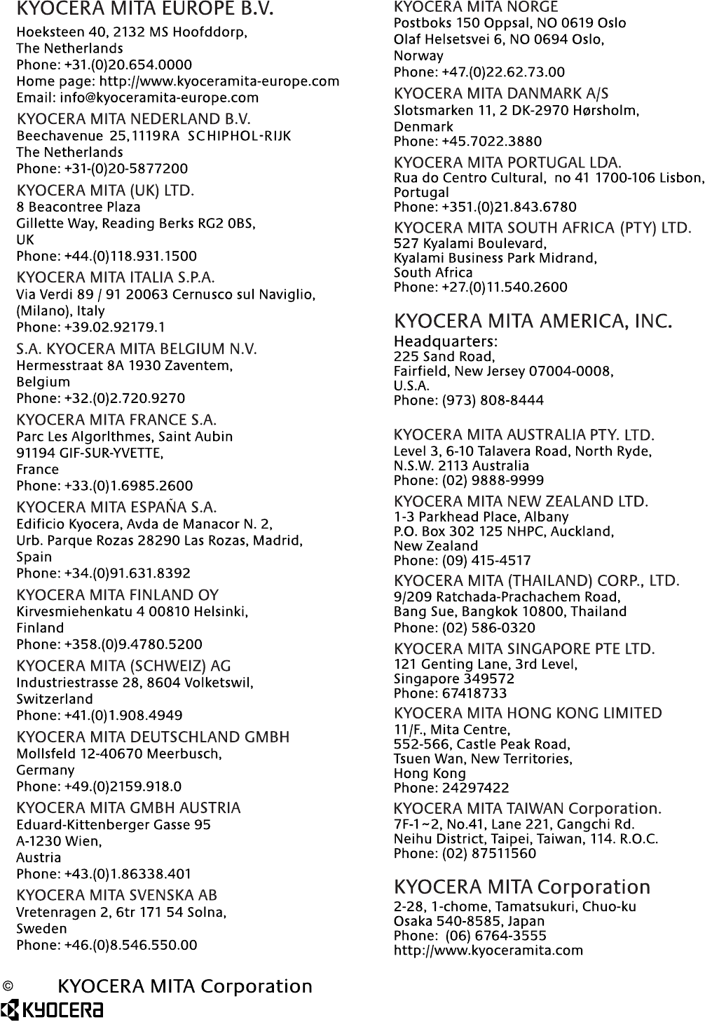 Kyocera Mita Corporation is prohibited. Any copies made of all or part of