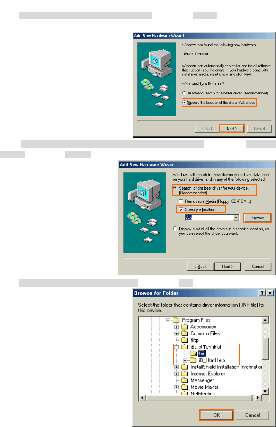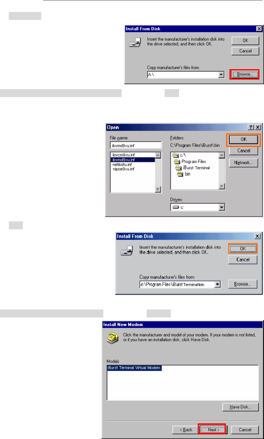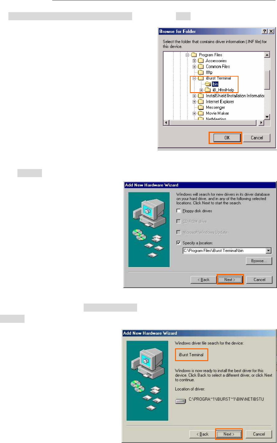 50. Select [C:\Program Files\iBurst Terminal\bin], and click the [OK] button.