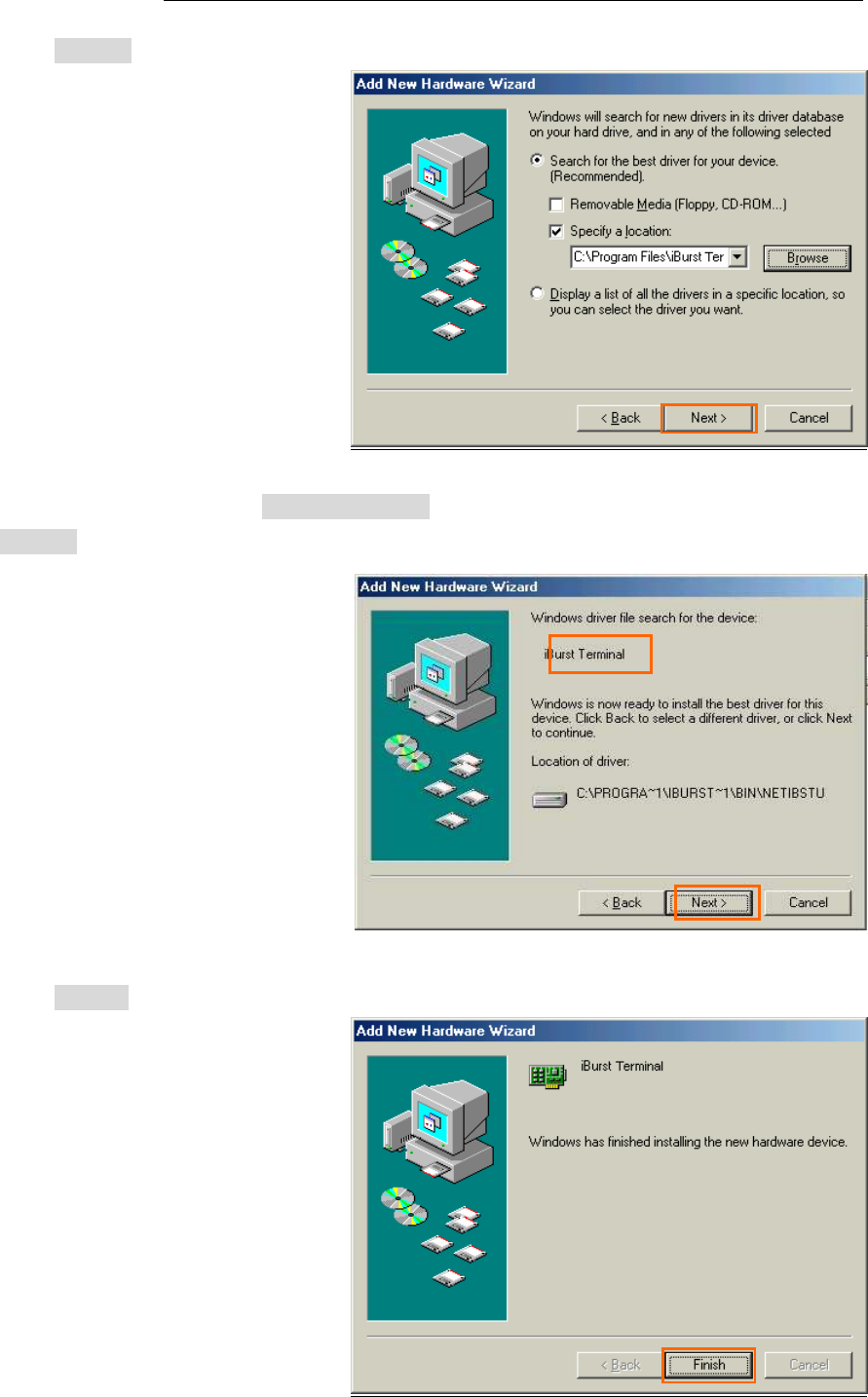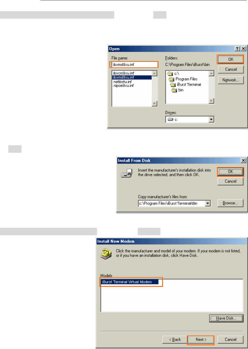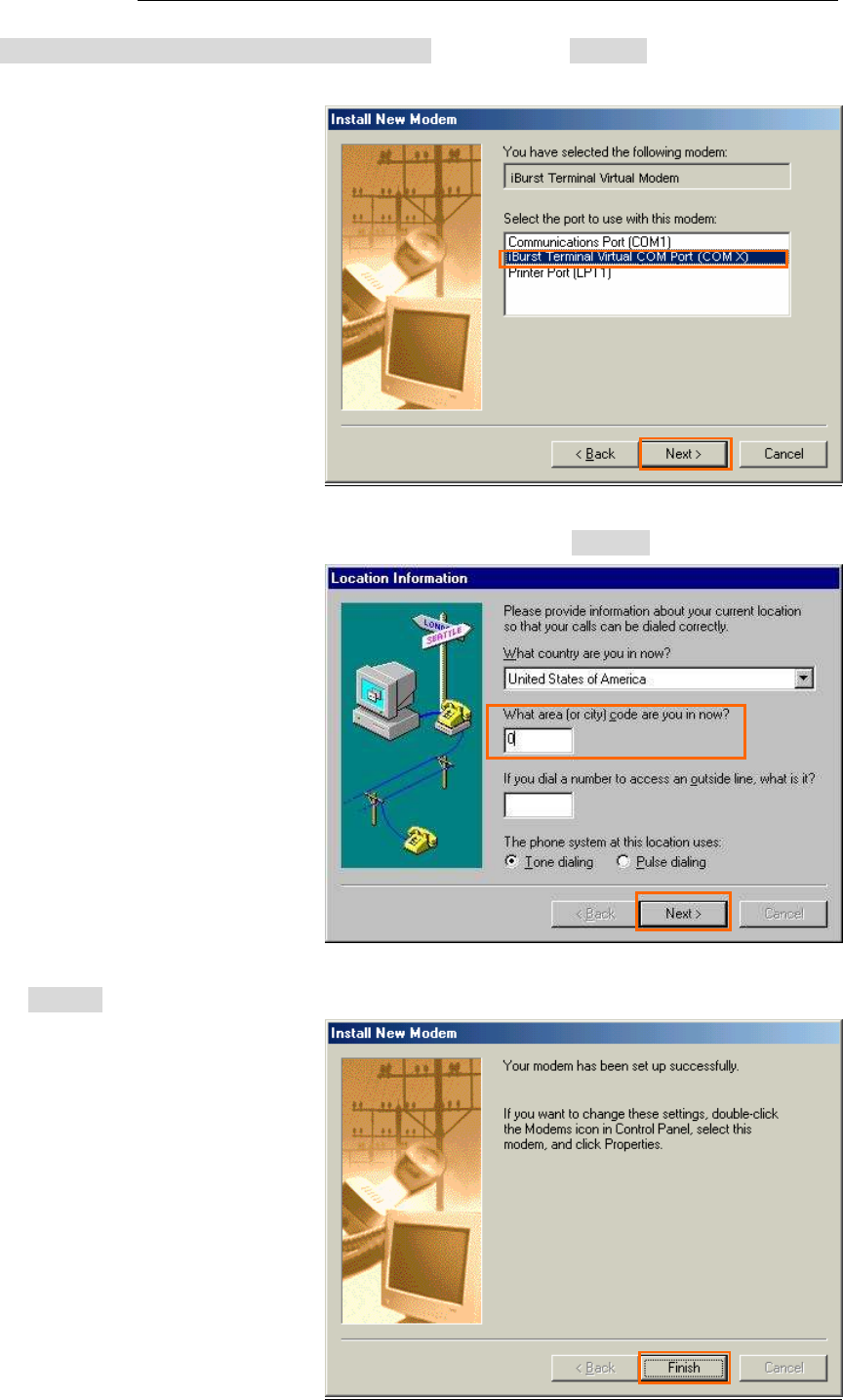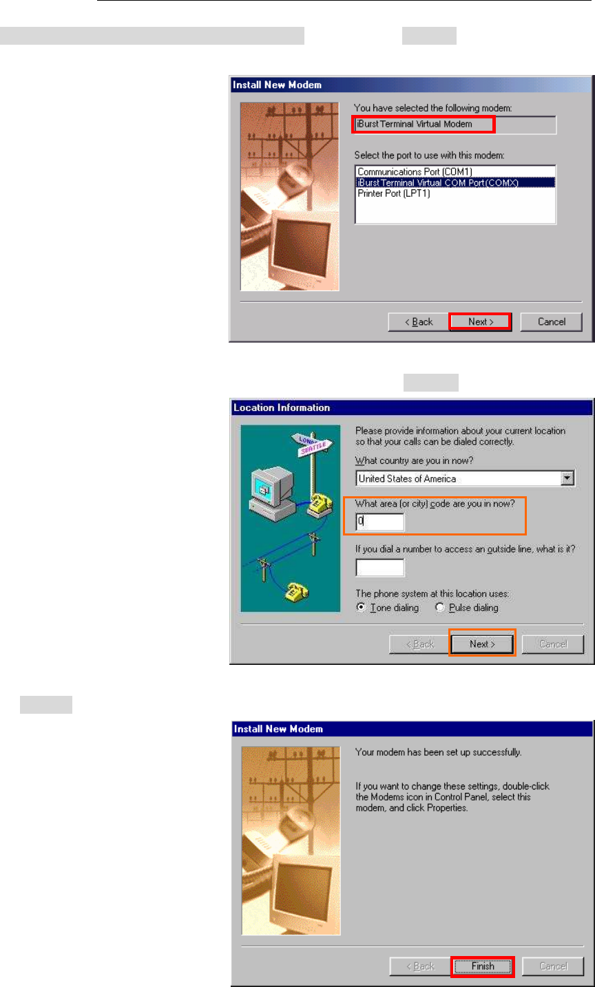 41. Select [iBurst Terminal Virtual MODEM], and click the [Next >] button.
