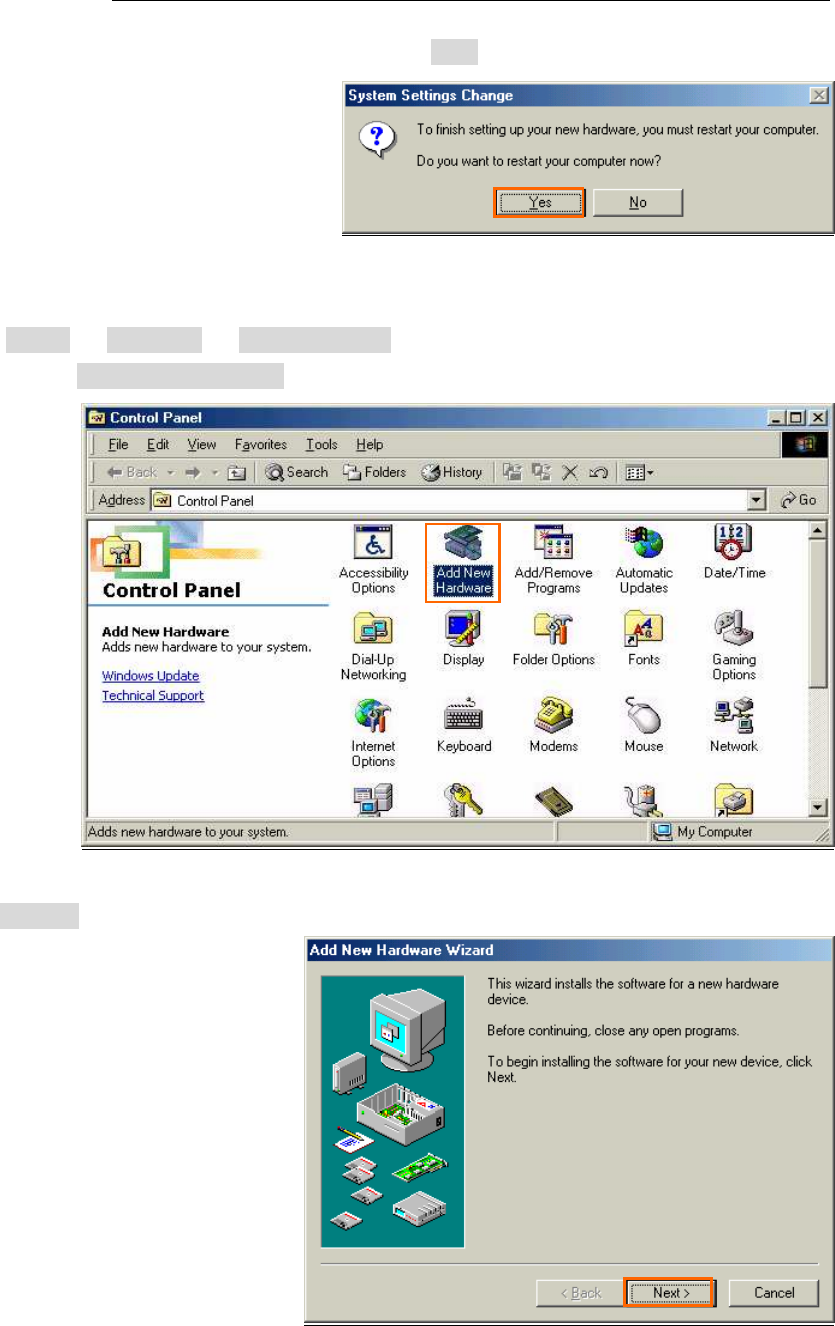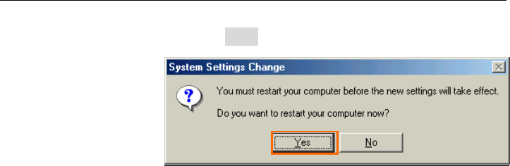 19. The dialog window shown below will appear, click the [Yes] button, and restart your PC.