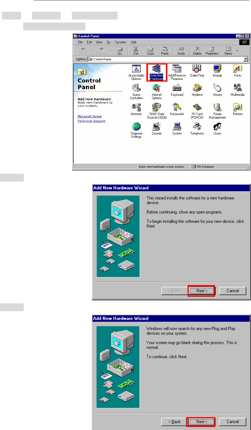 45. Click the [Start] -> [Settings] -> [Control Panel] to open Control Panel as shown below, and
